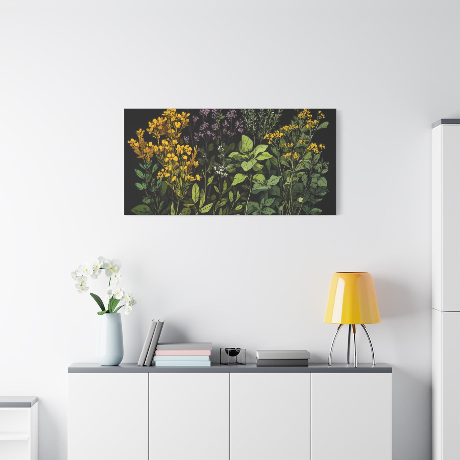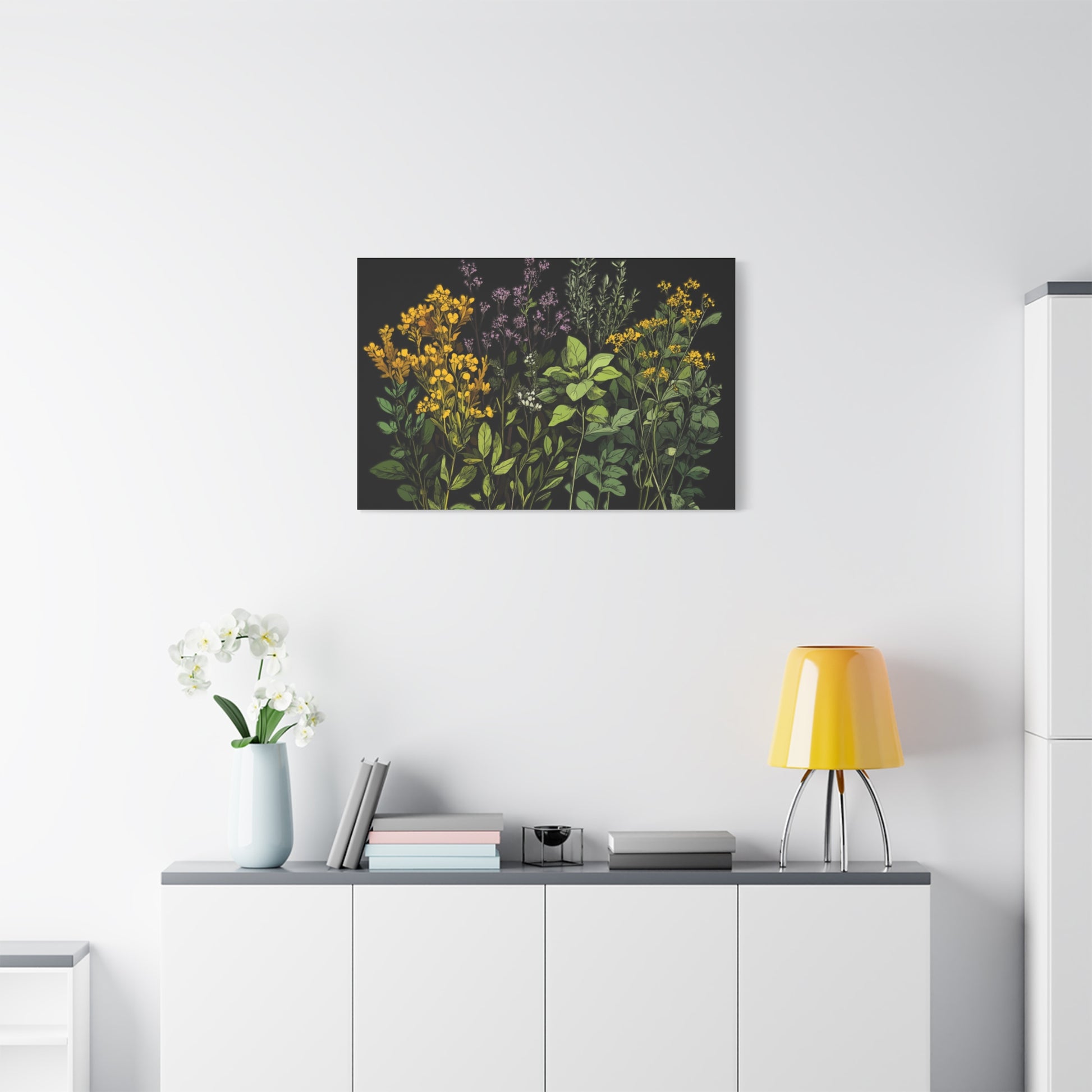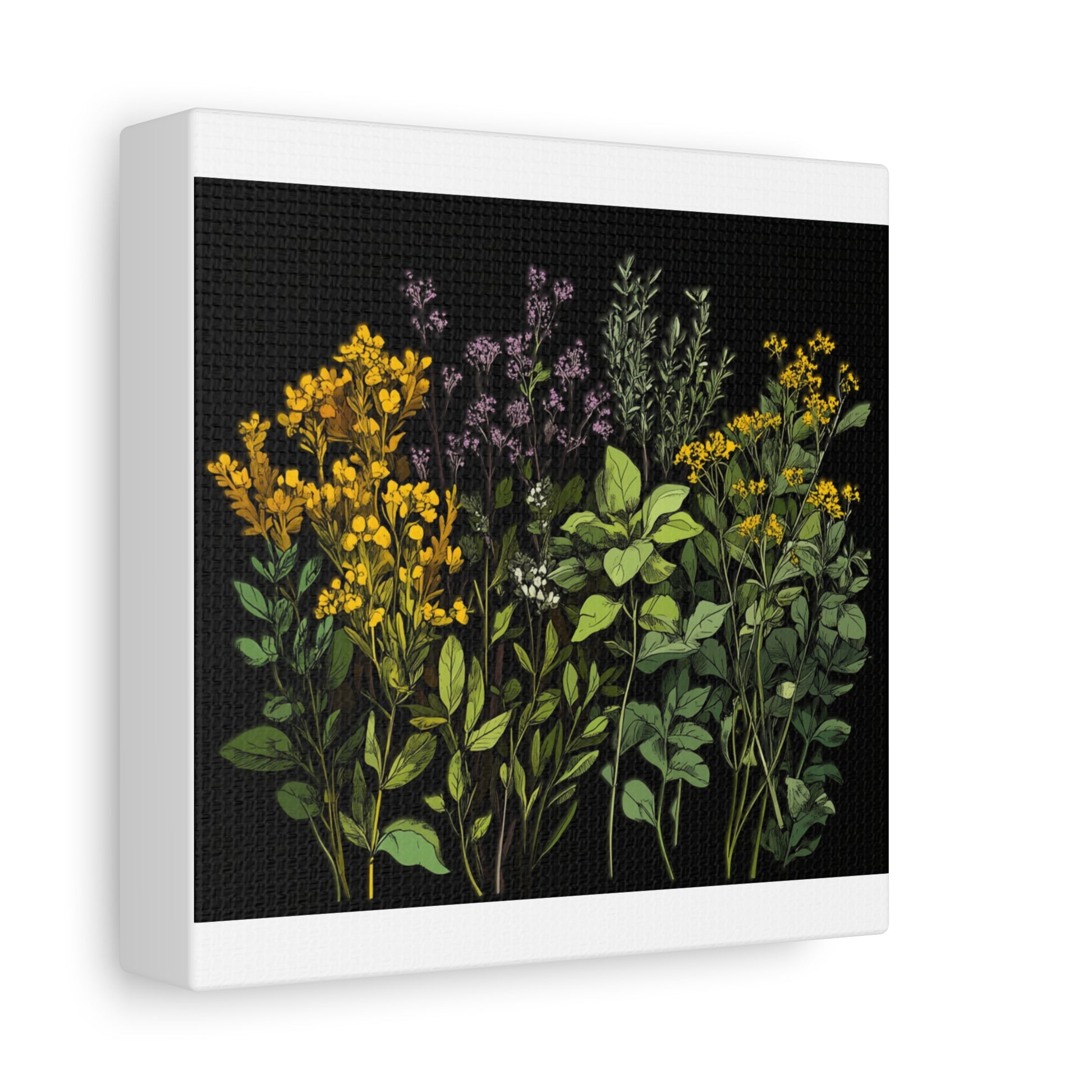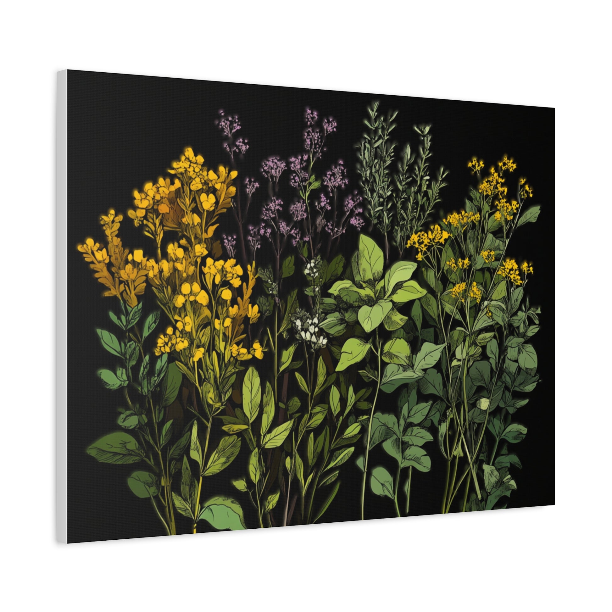 Botanical Wall Art - Matte Canvas Print of Colorful Herbs and Flowers