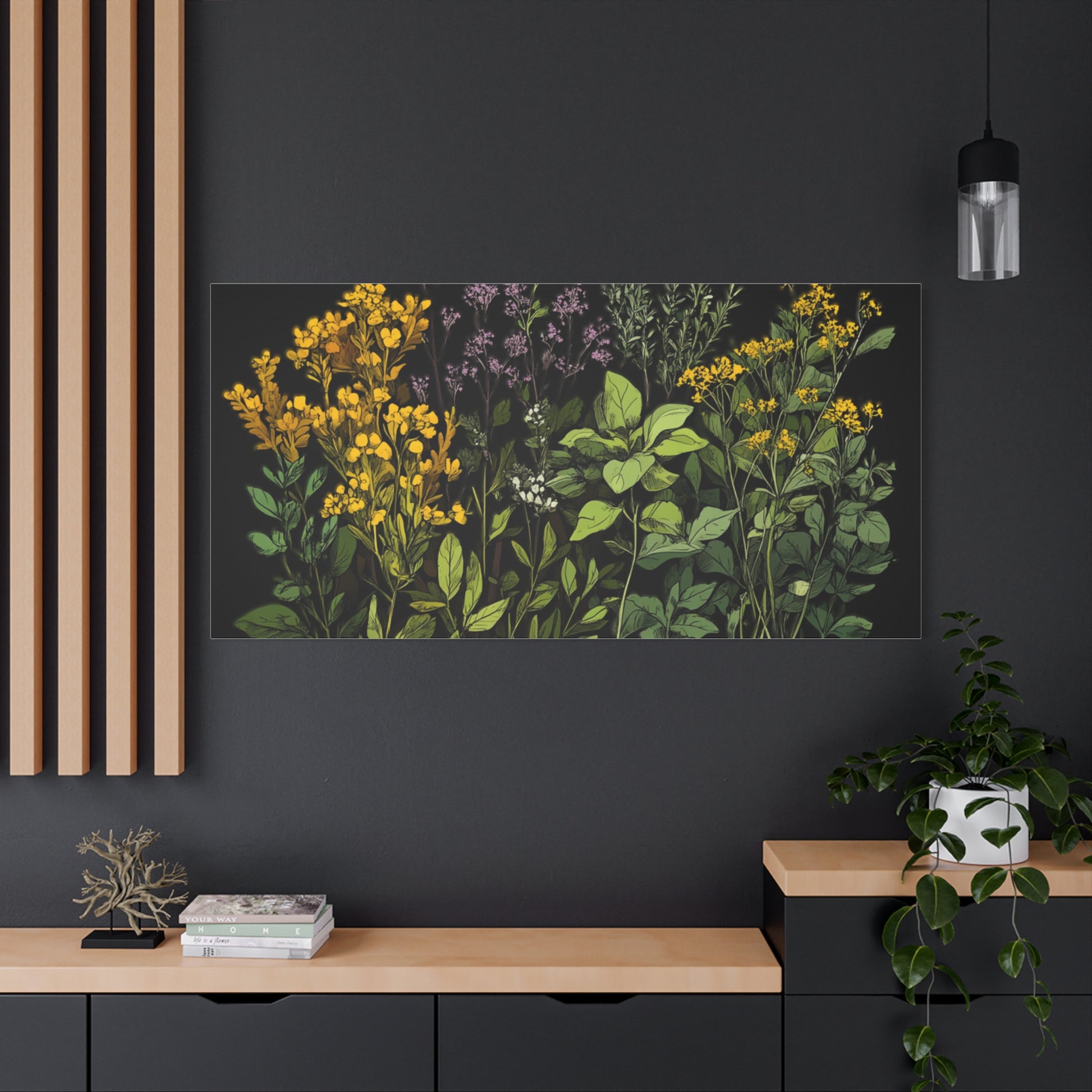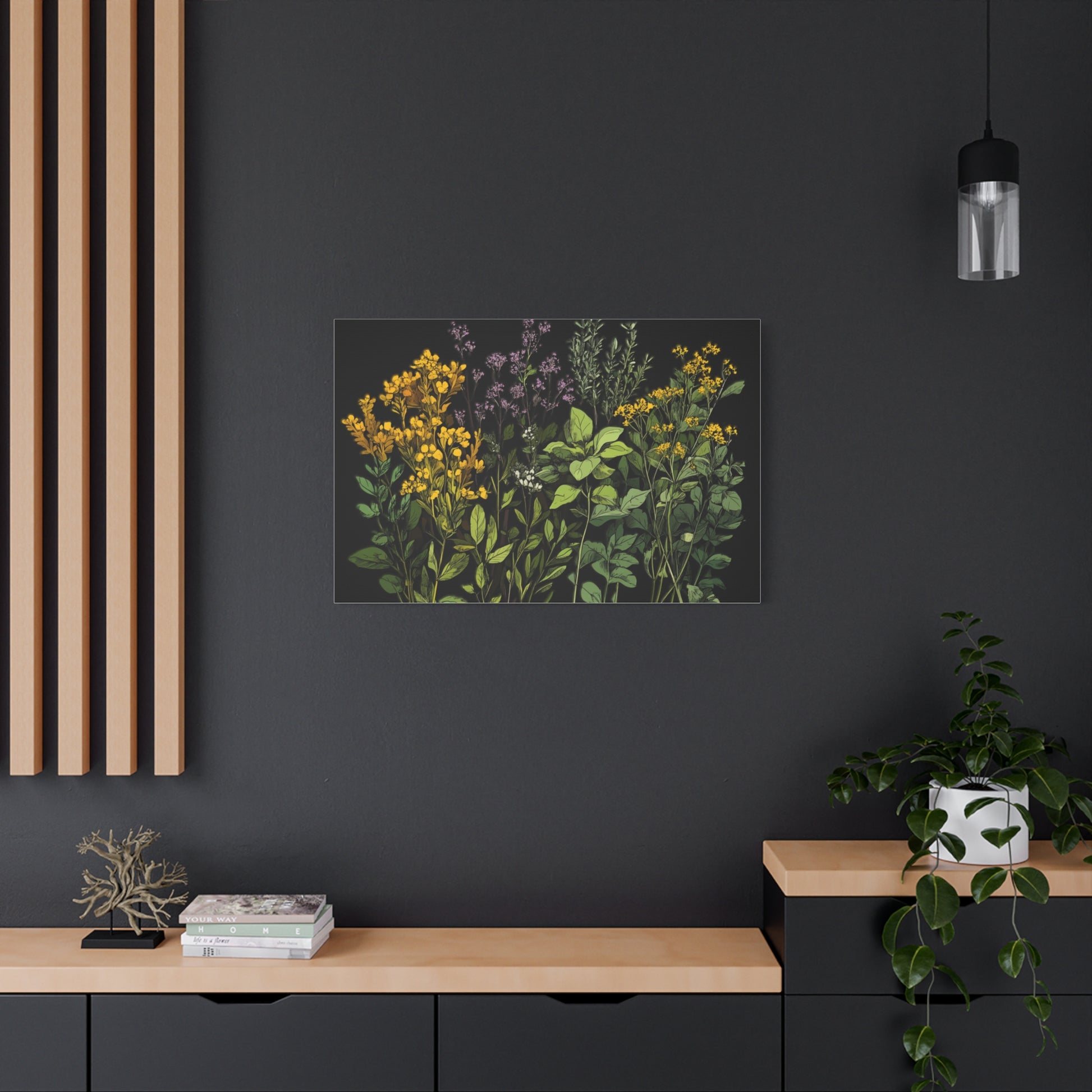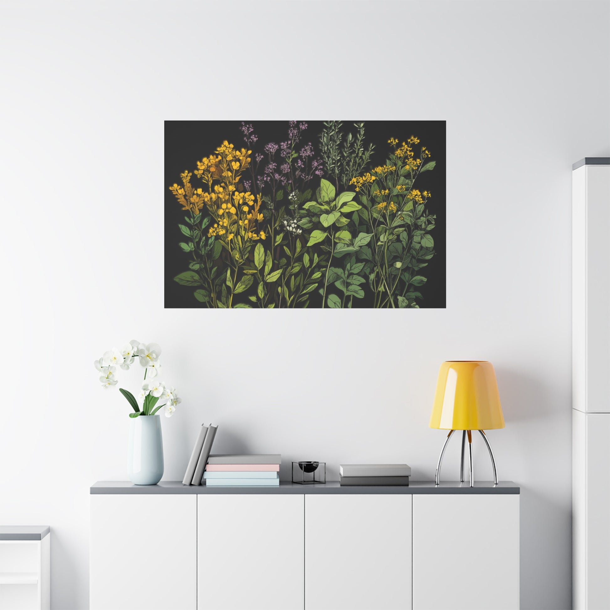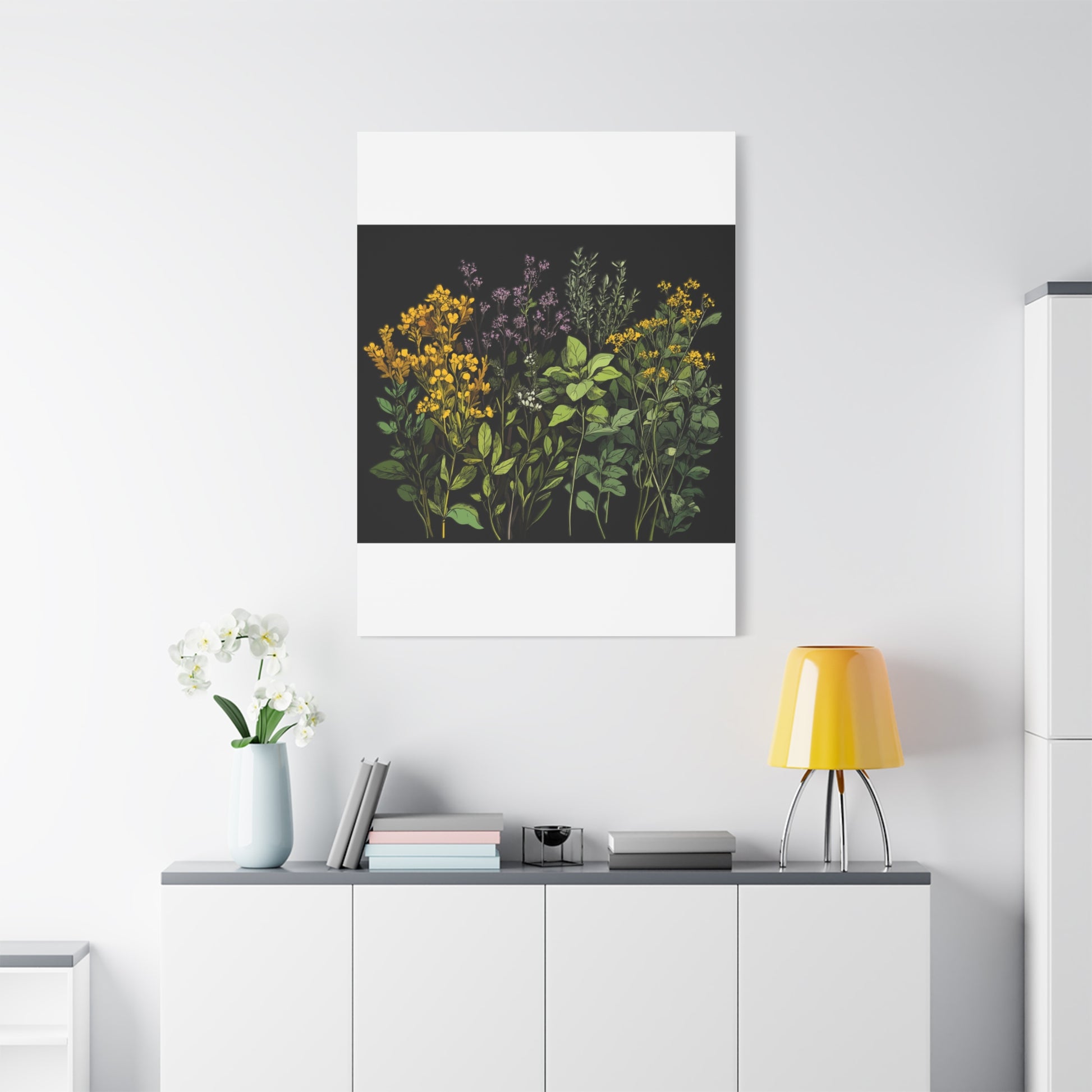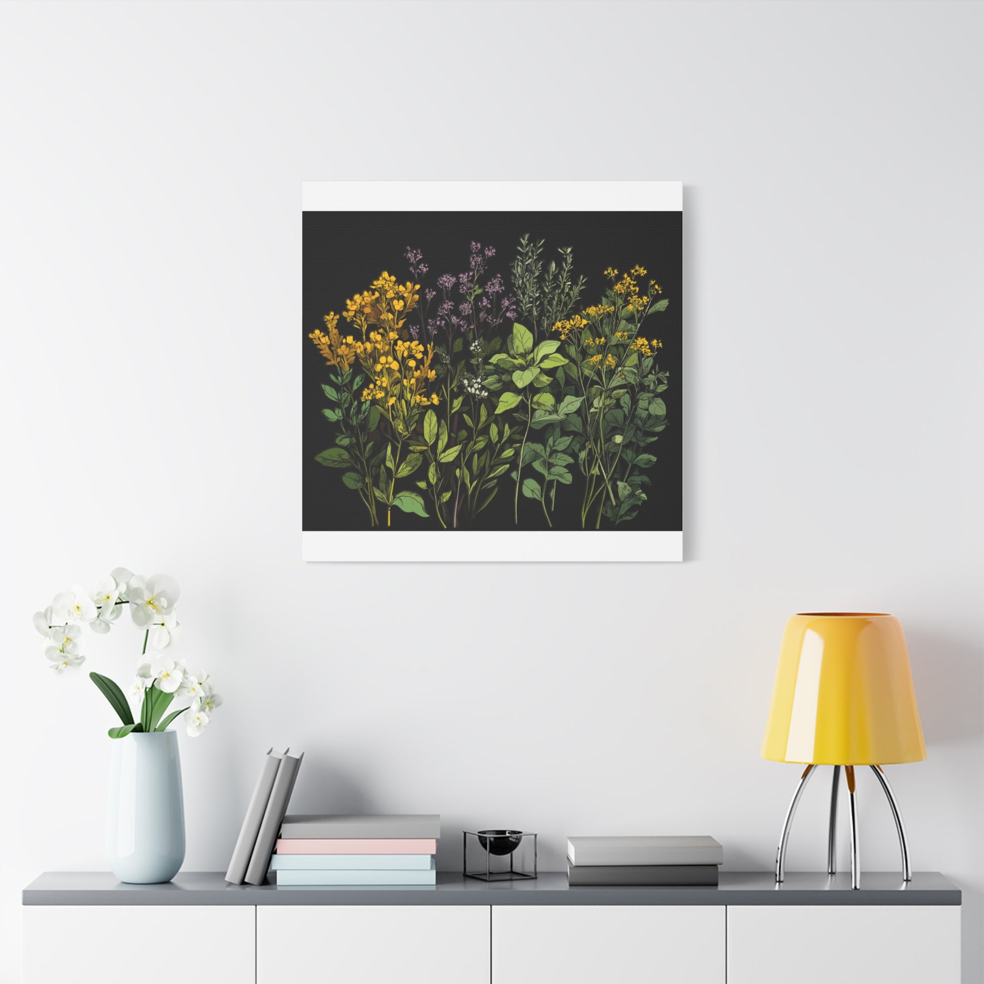 Botanical Wall Art - Matte Canvas Print of Colorful Herbs and Flowers