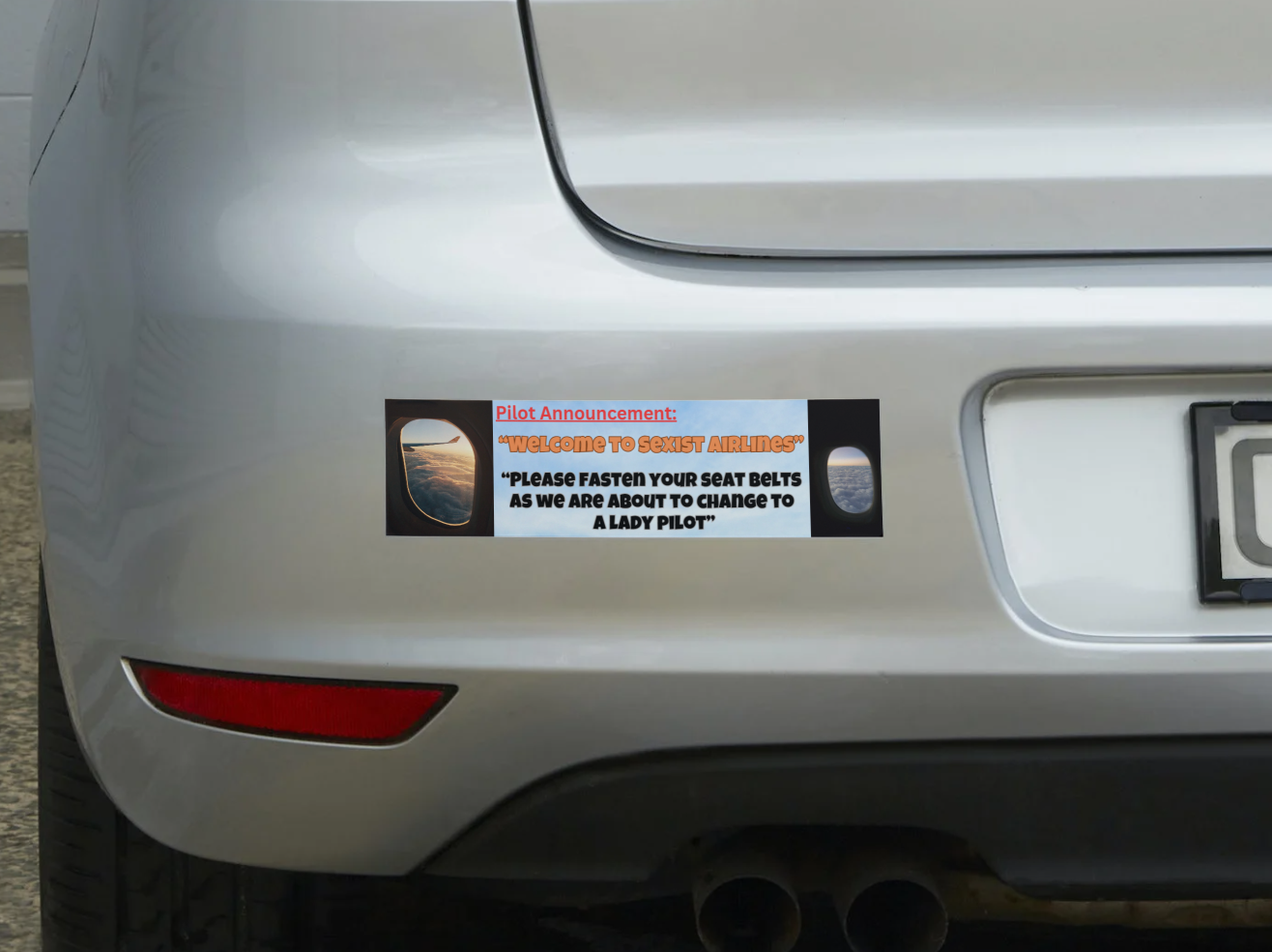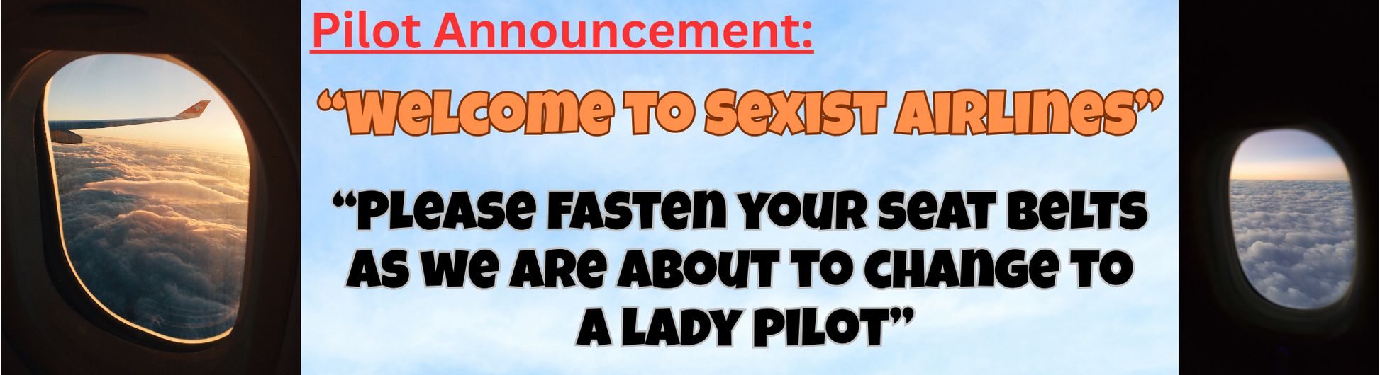 Pilot Announcement: "Welcome to Sexist Airlines" "Please fasten your seat belts as we are about to change to a lady pilot”