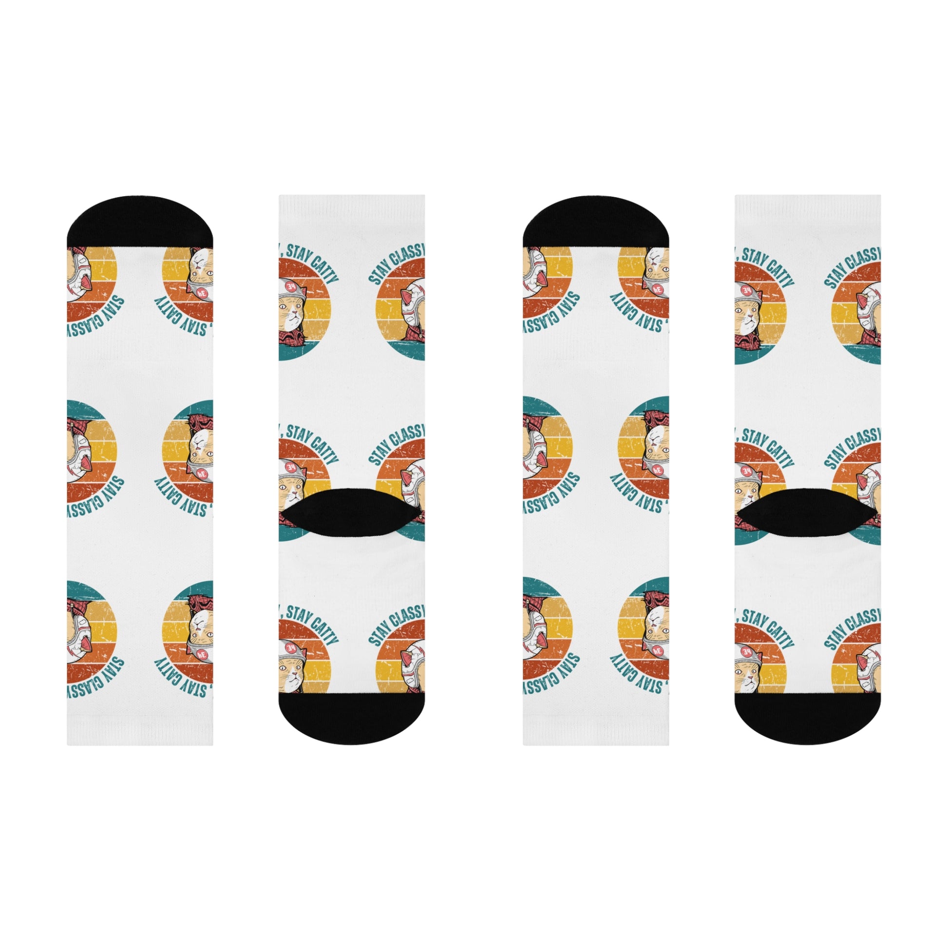 These cushioned DTG crew socks are a one-size style designed with both function and appearance in mind. With the fully cushioned heel-to-toe, these socks provide superior comfort, while the DTG print process allows for ultra-crisp, crease-free printing. Composed of 73% polyester, 18% nylon, 6% spandex, and 3% cotton, these socks are an elevated alternative to the typical sublimation sock and provide a clean, comfortable base for your all-over print designs.