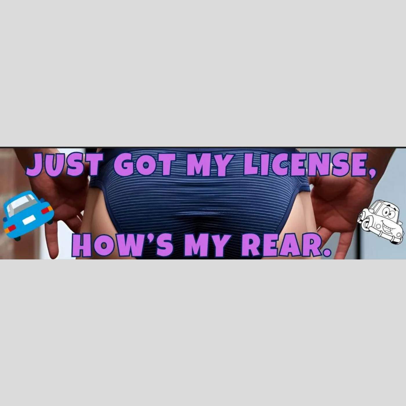 Funny New Driver Bumper Sticker 5 – "Just Got My License, How's My Rear?" – Teen Driver Gift, Car Decal, Graduation Humor Sticker