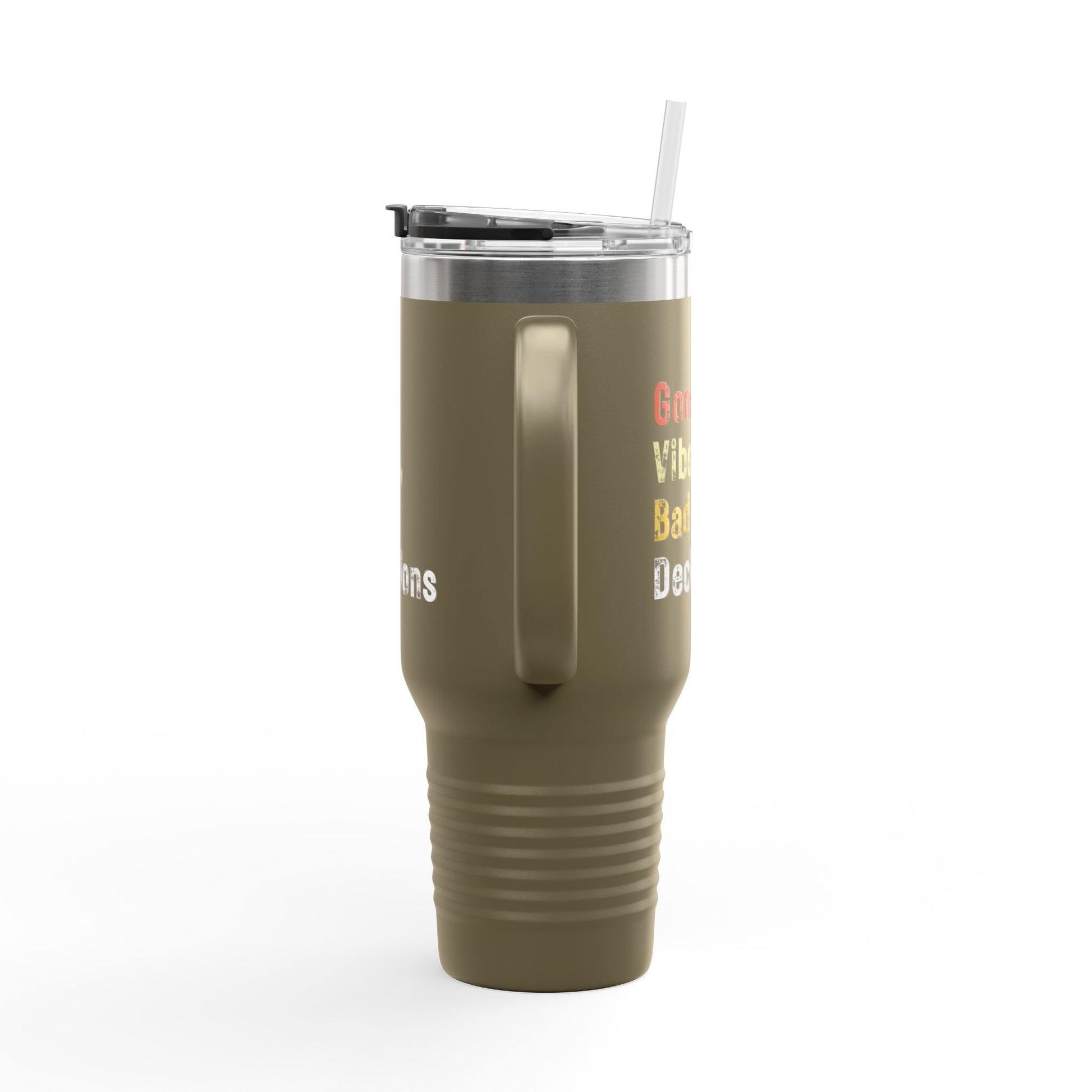 This insulated travel mug is designed for adventure, featuring a durable 100% stainless steel body and a straw with a lid for enhanced convenience on the go. With a generous 40oz (1.183l) capacity, it keeps your beverages at the perfect temperature thanks to its double-wall insulation. The powder-coated finish adds a sleek touch and is available in eight vibrant color variants so you can find that perfect match.
