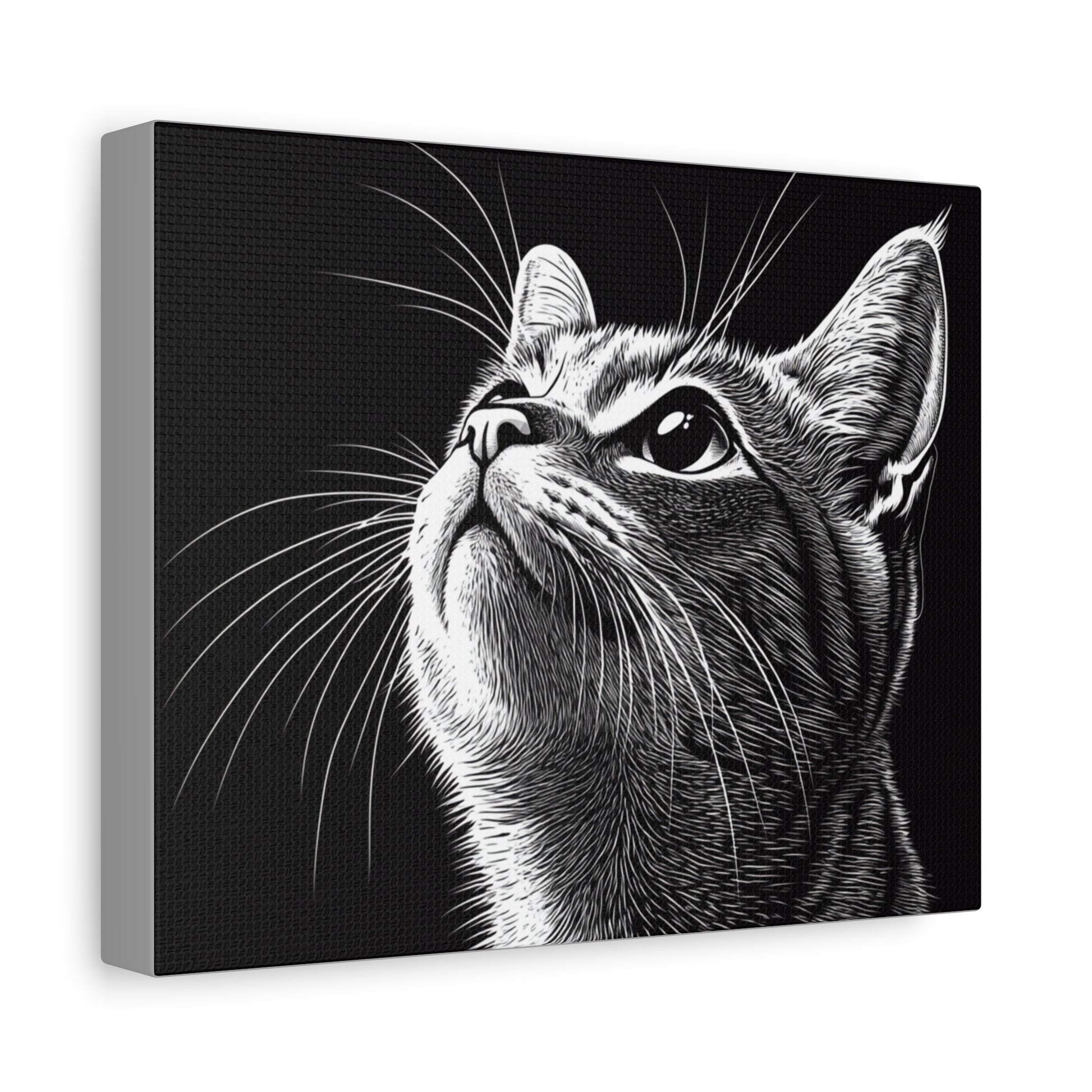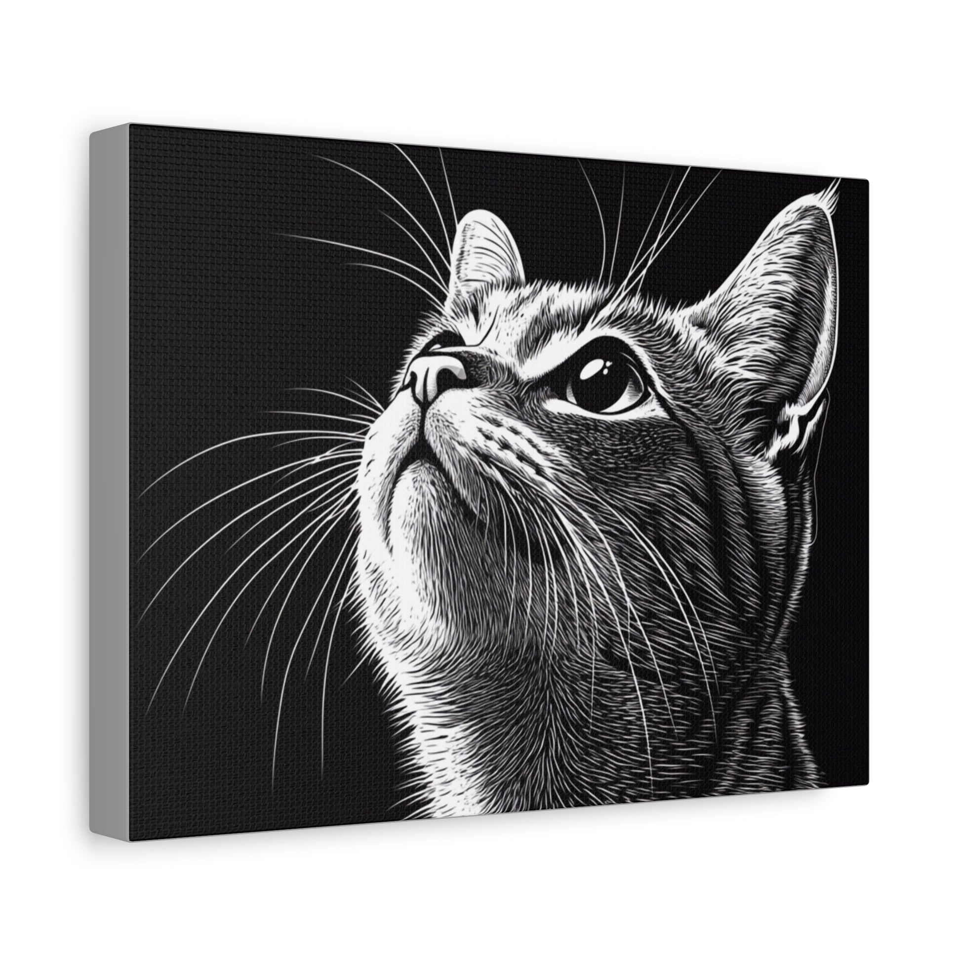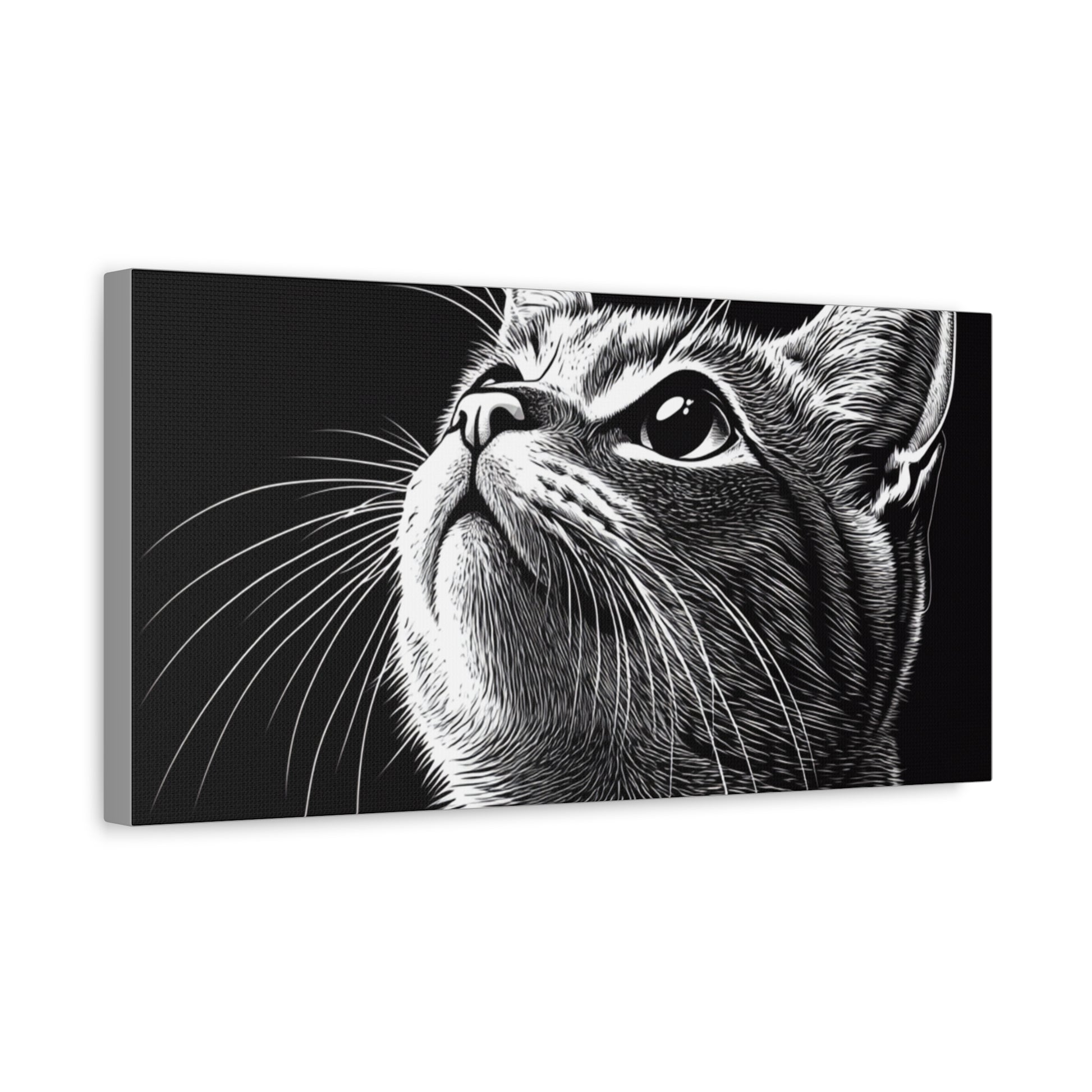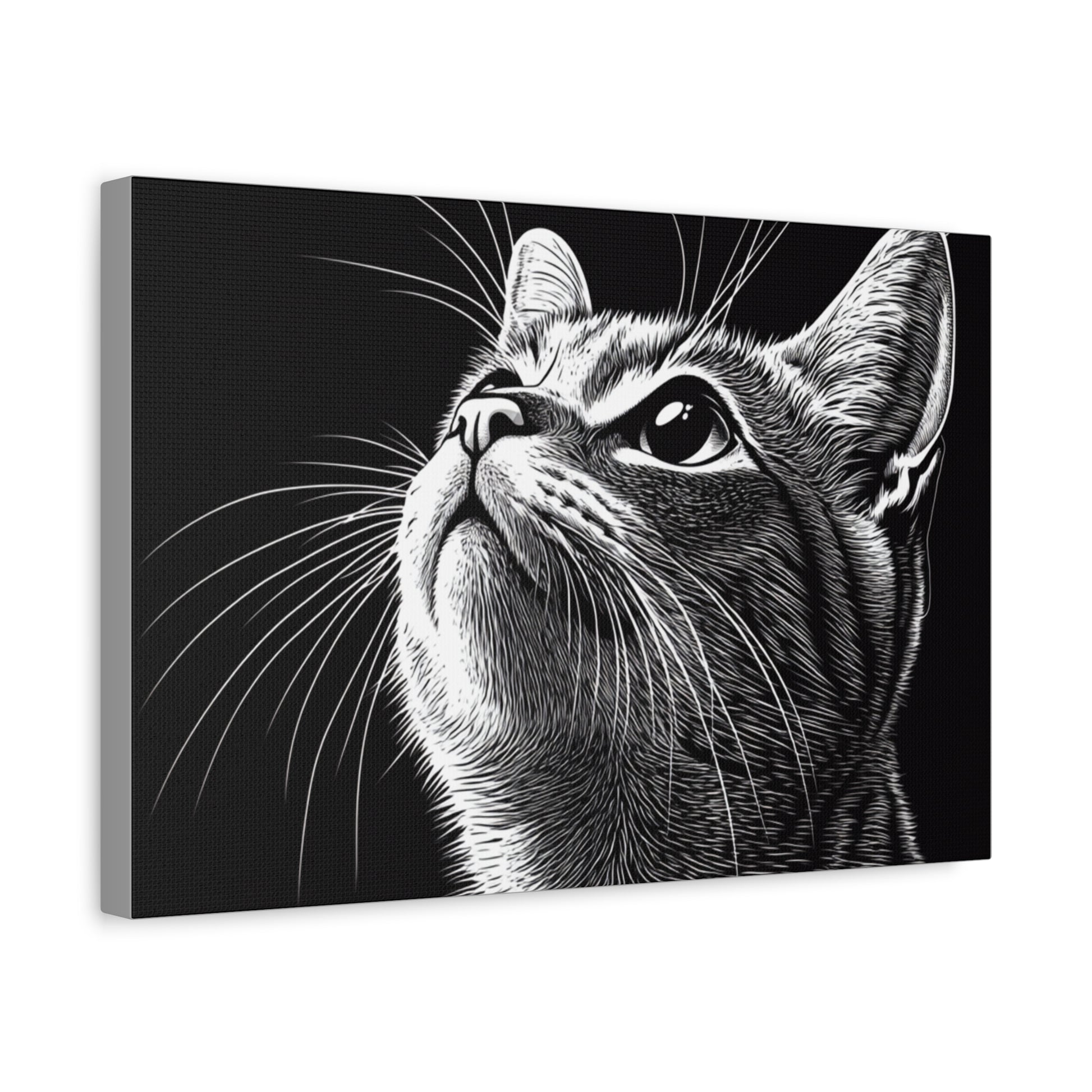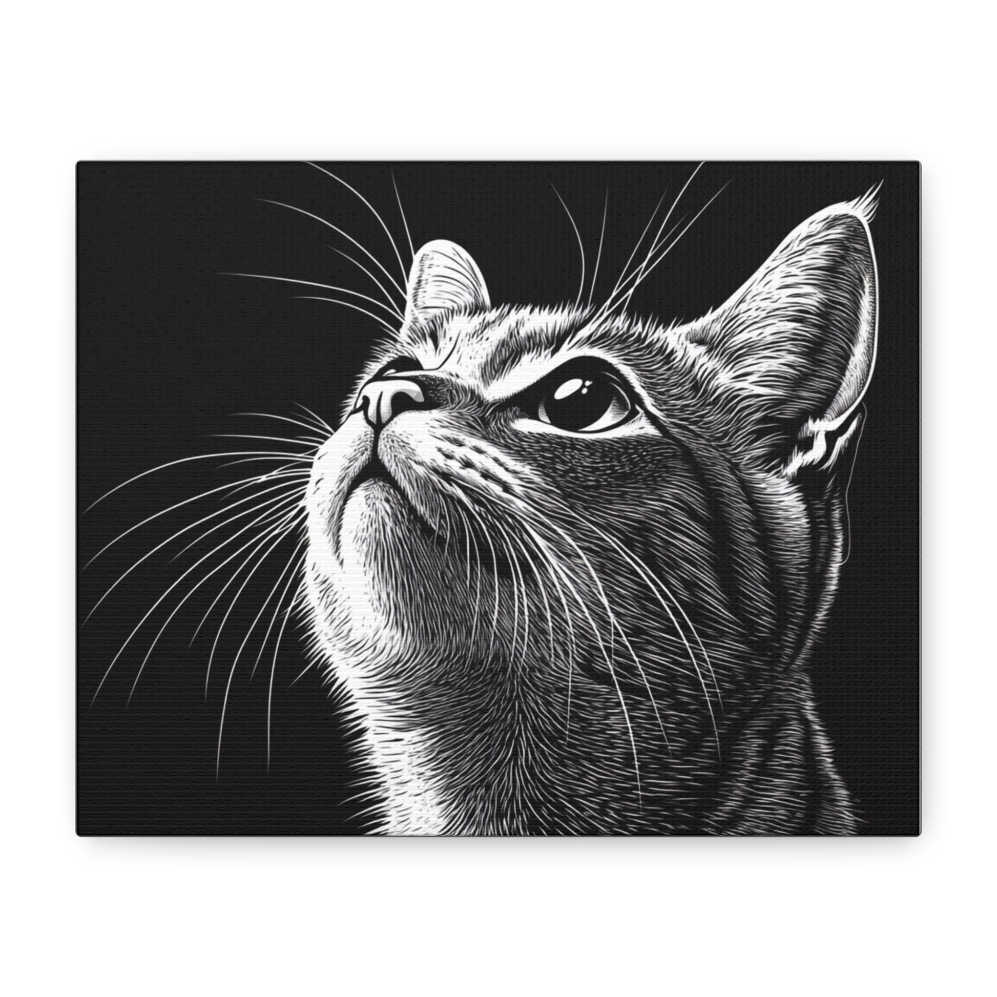 Portrait Cat Canvas Wall Art - Black and White Stretched Print