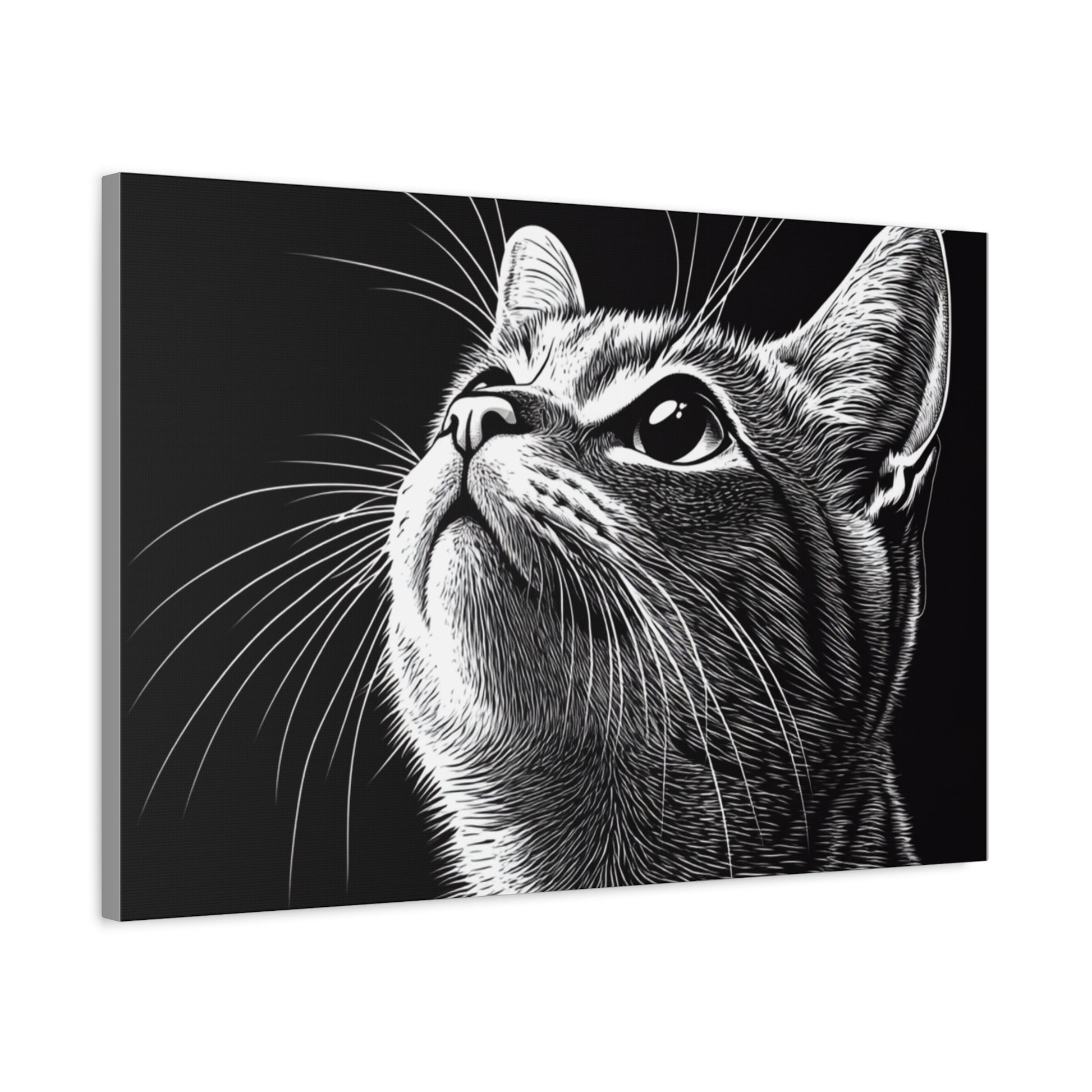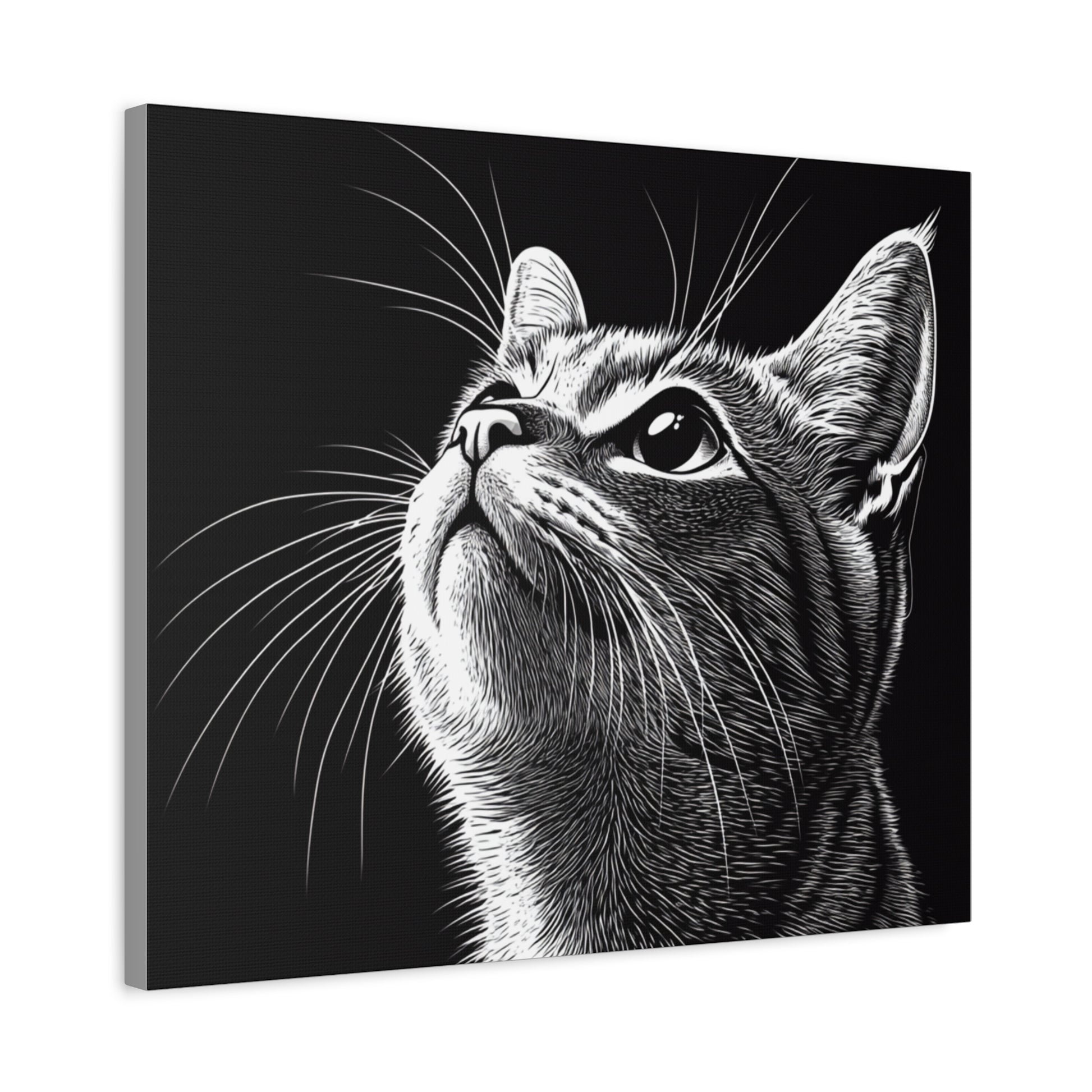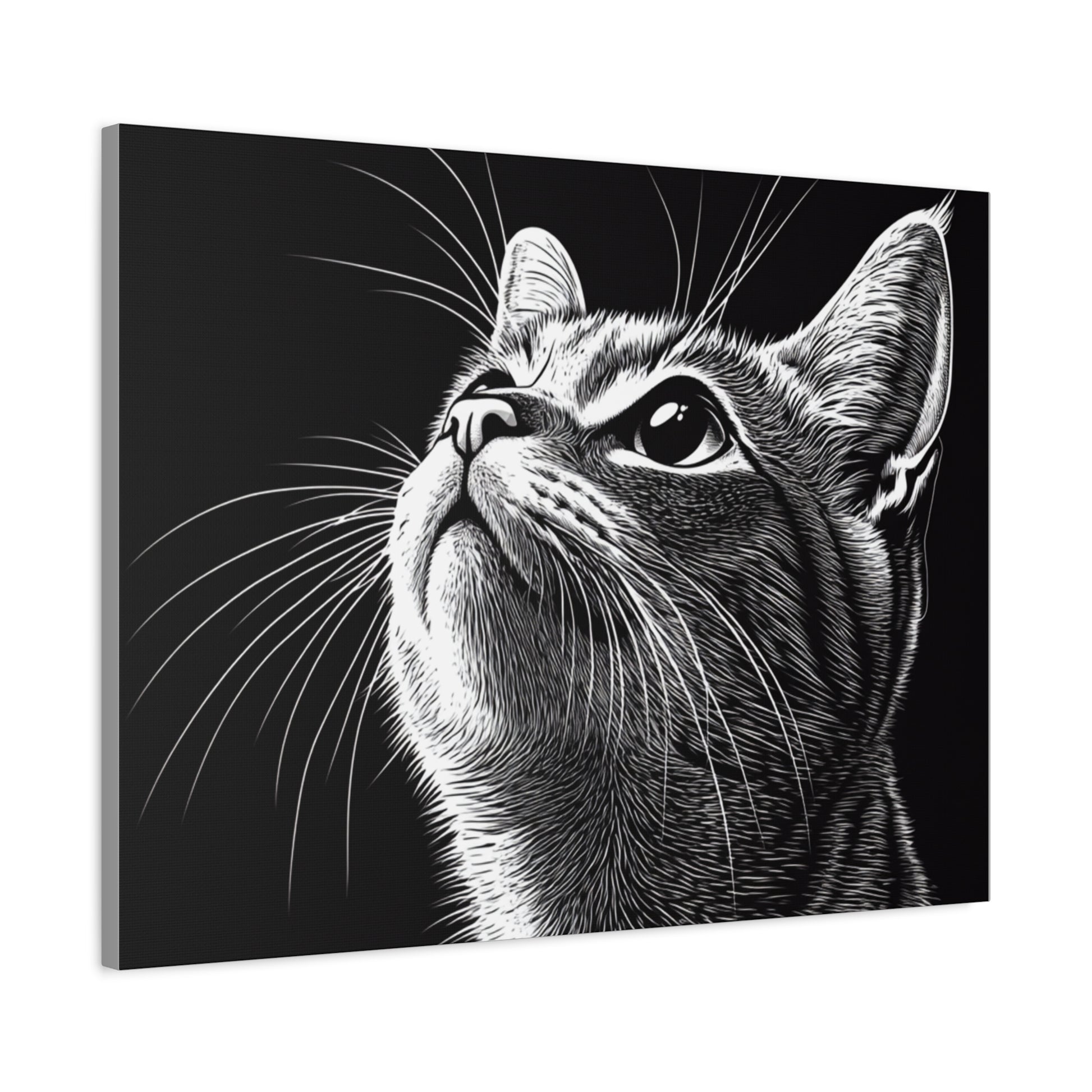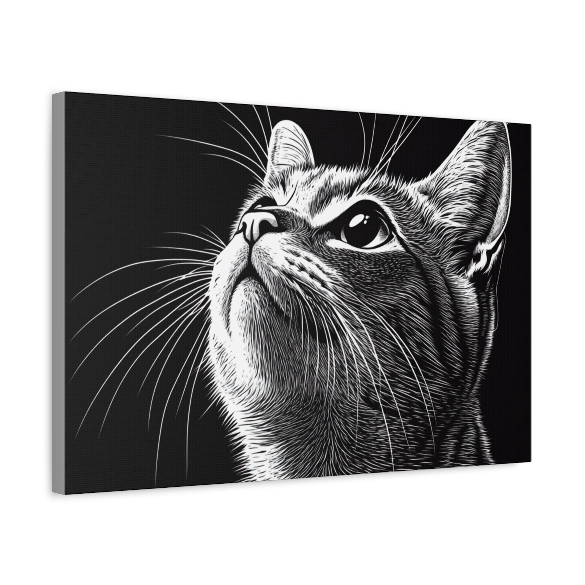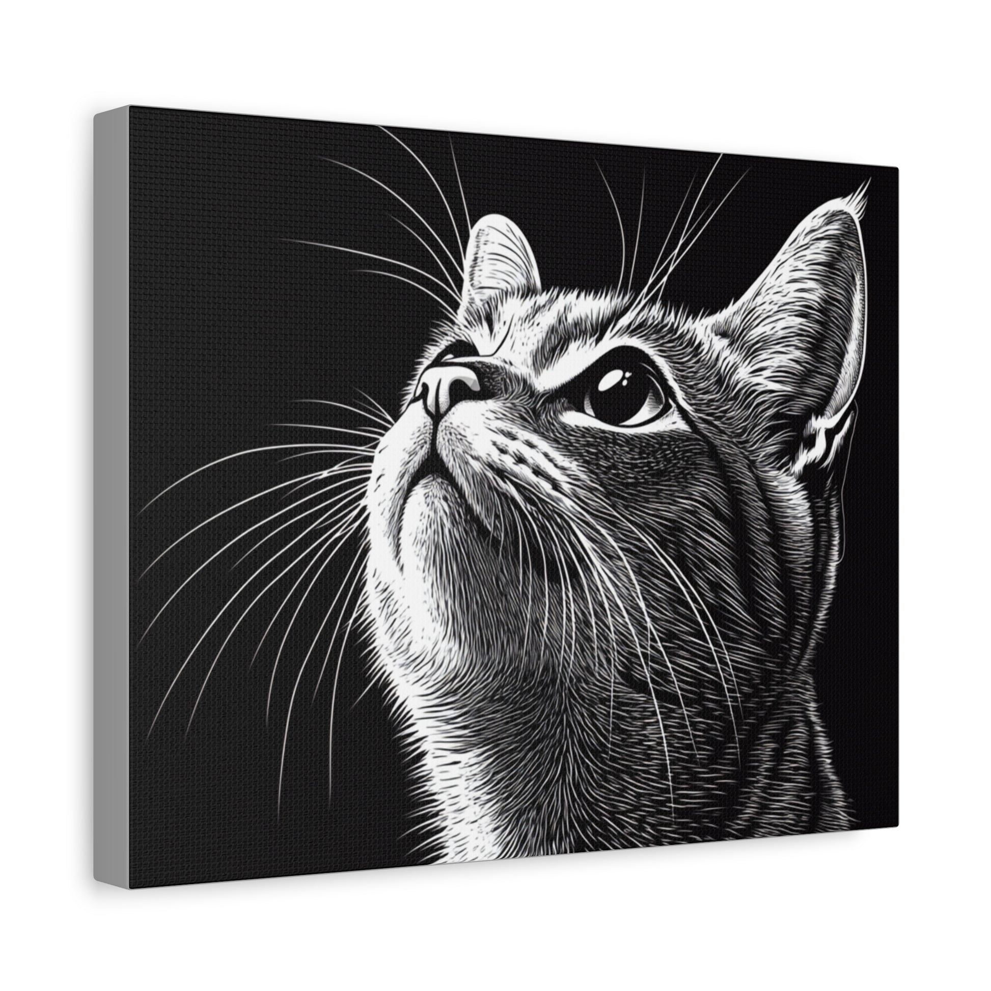 Portrait Cat Canvas Wall Art - Black and White Stretched Print