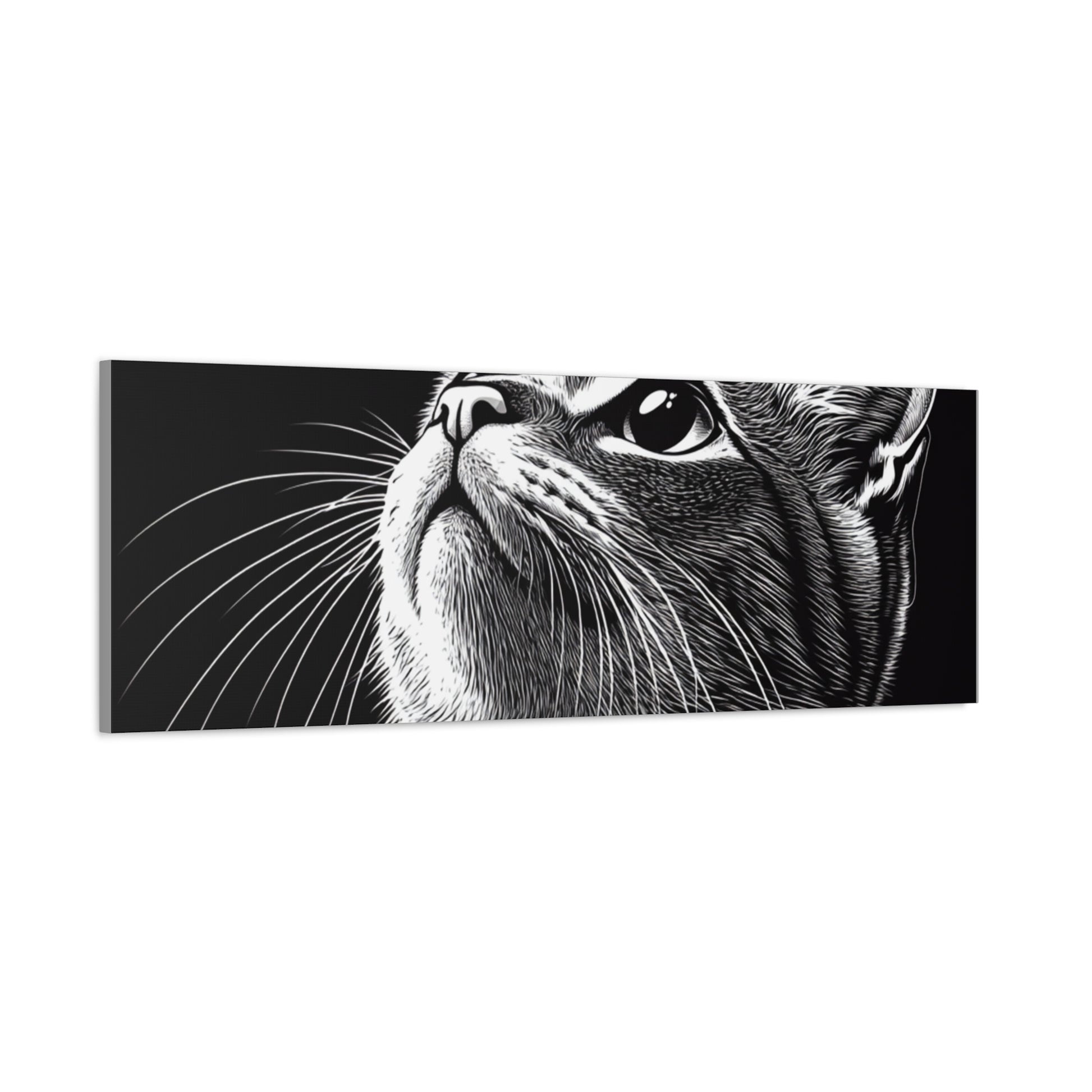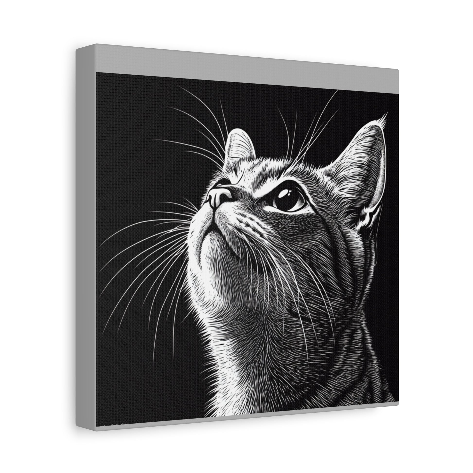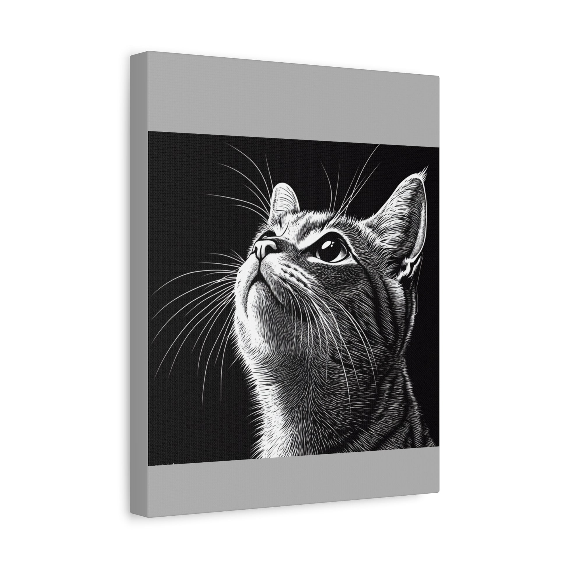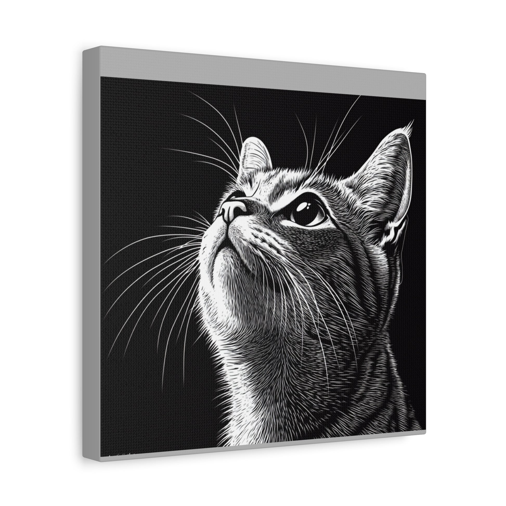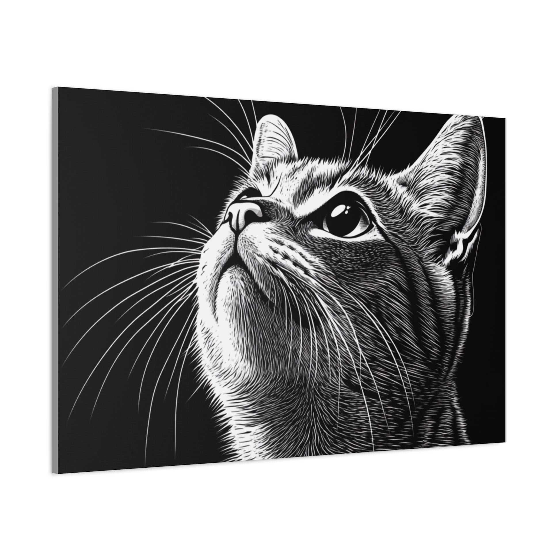 Portrait Cat Canvas Wall Art - Black and White Stretched Print