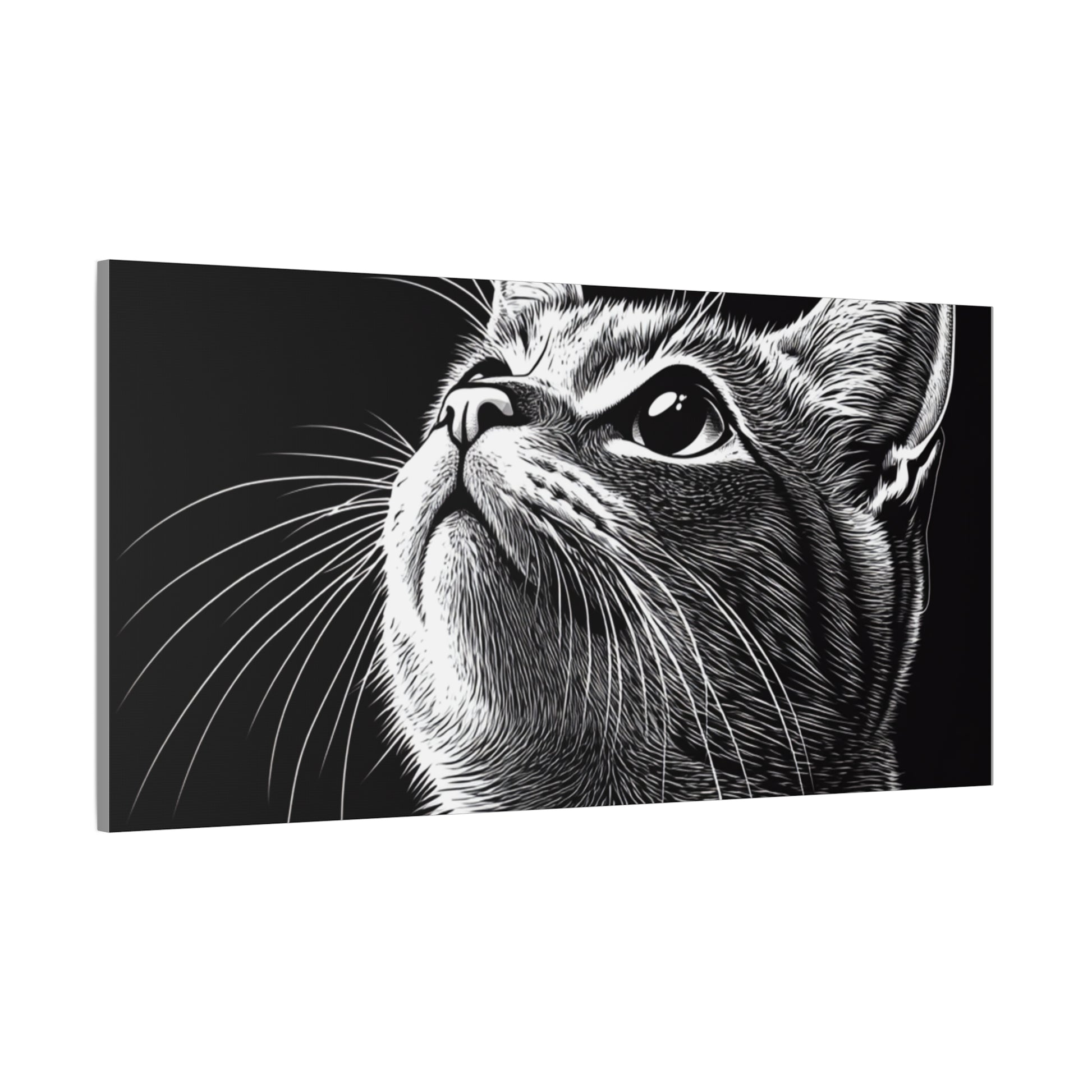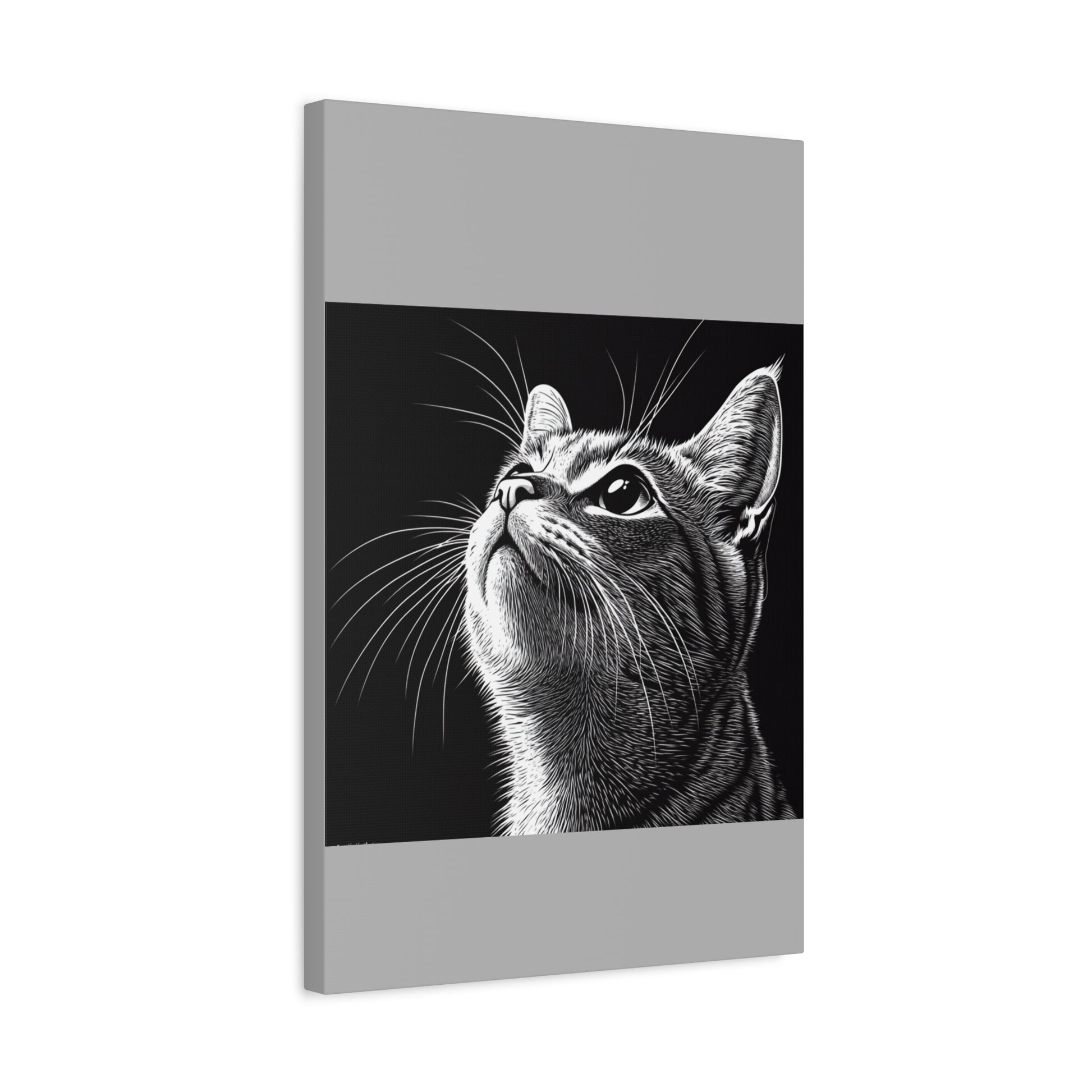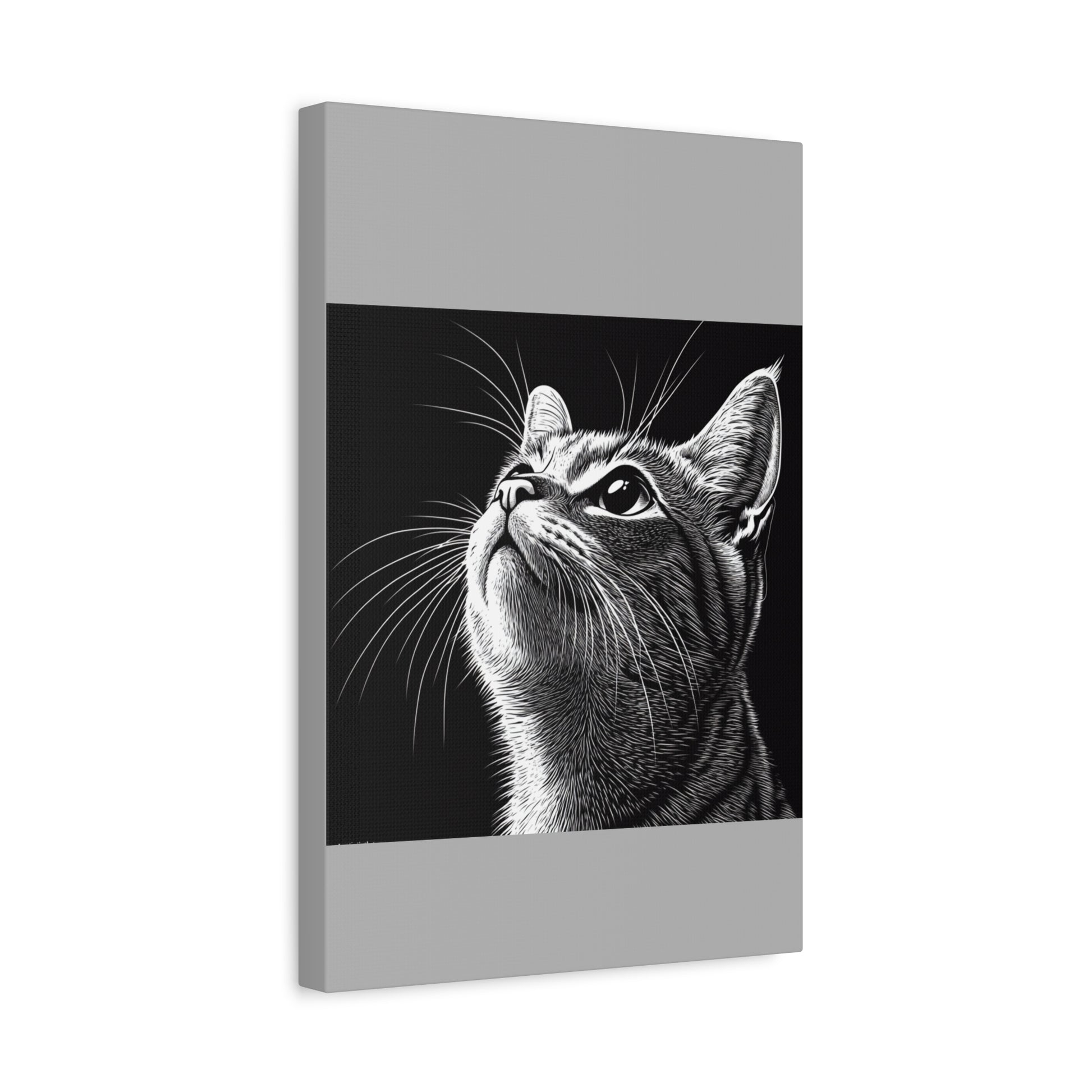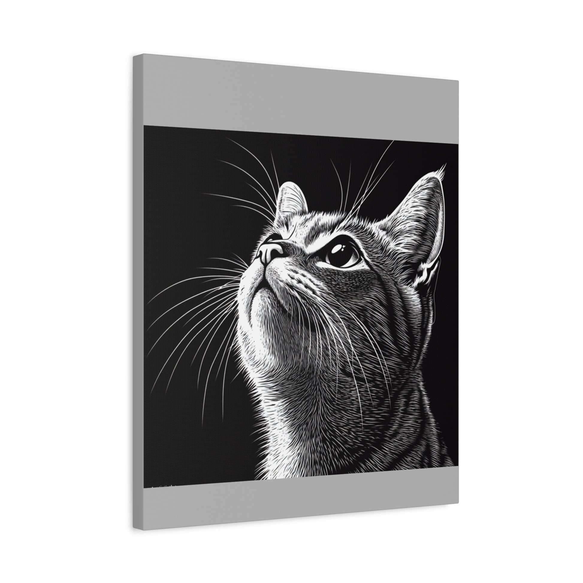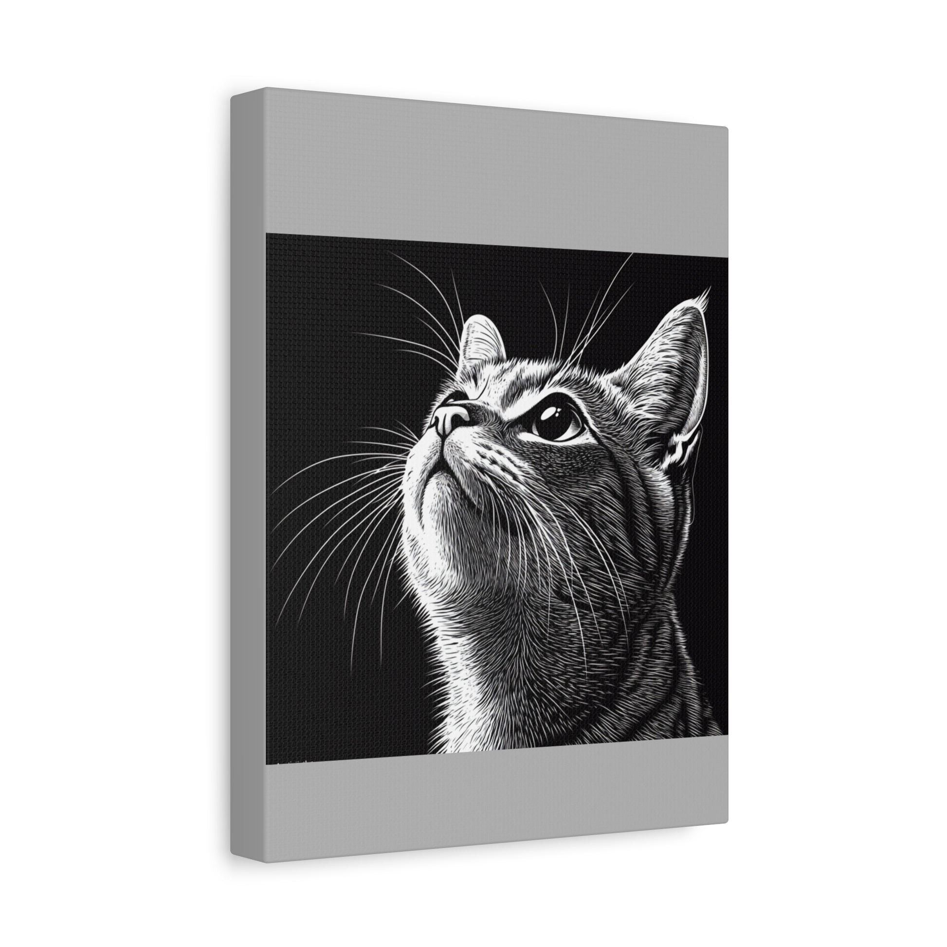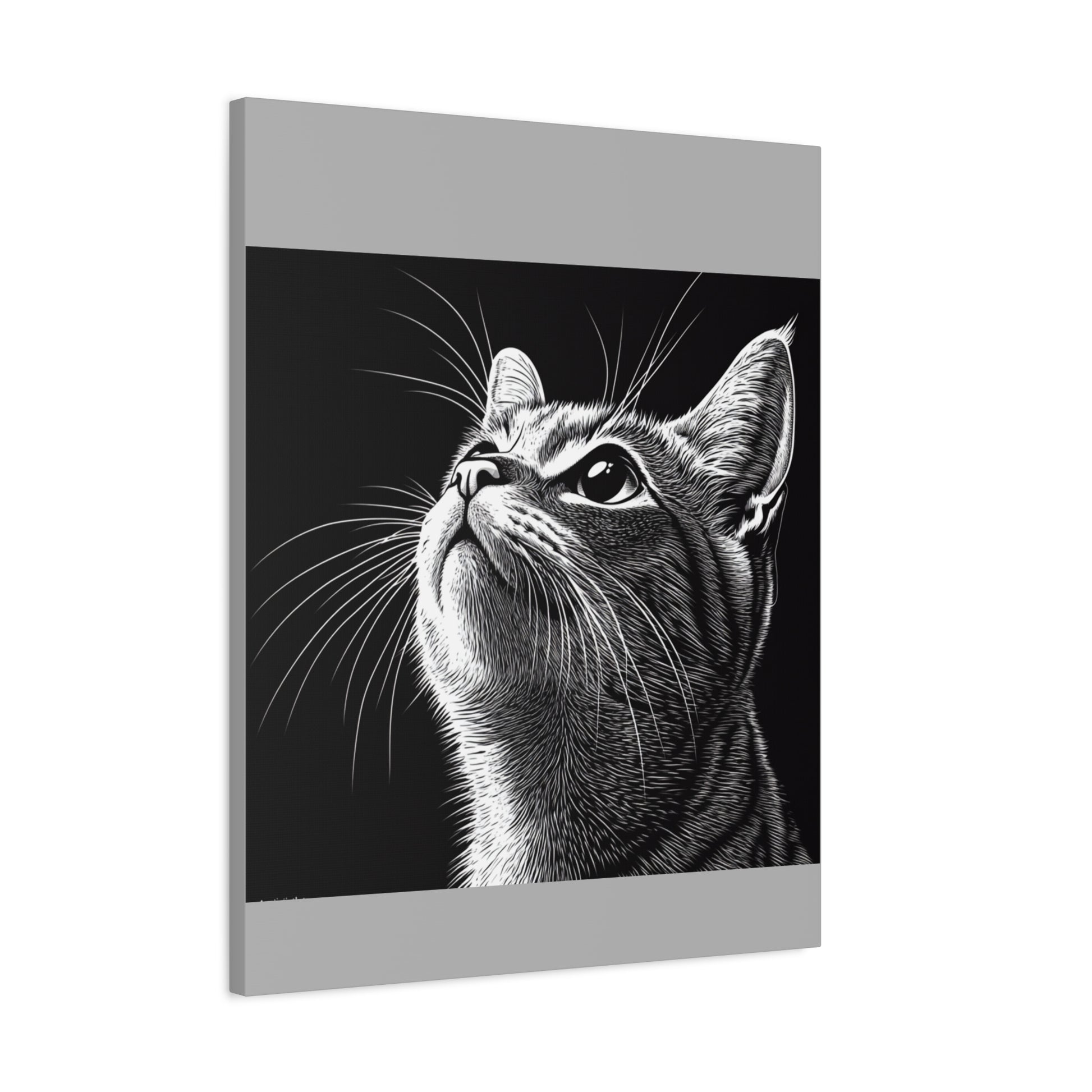 Portrait Cat Canvas Wall Art - Black and White Stretched Print