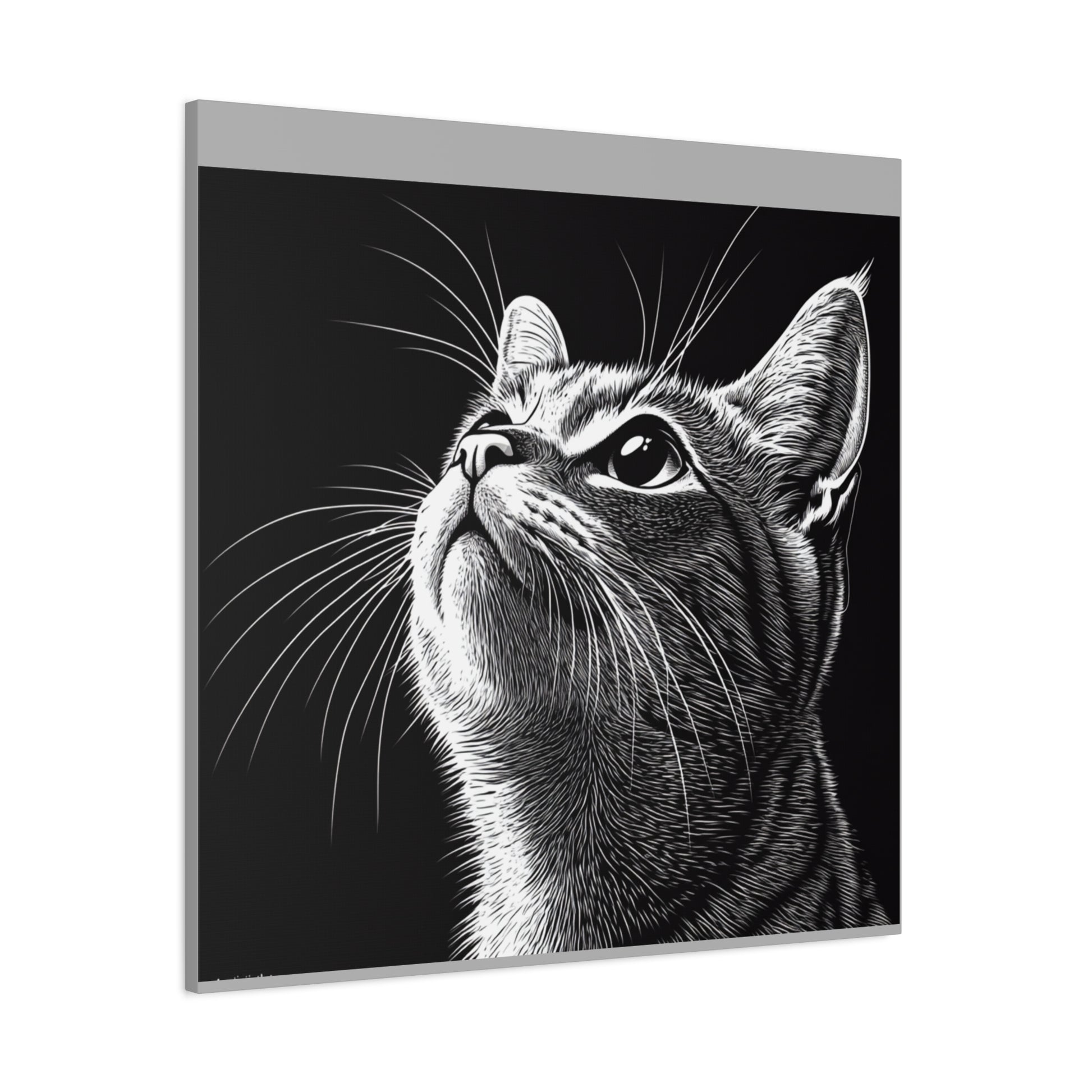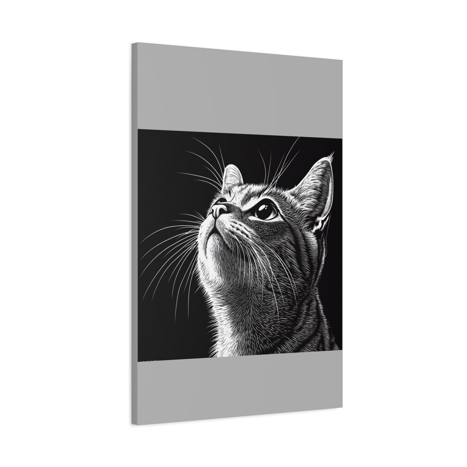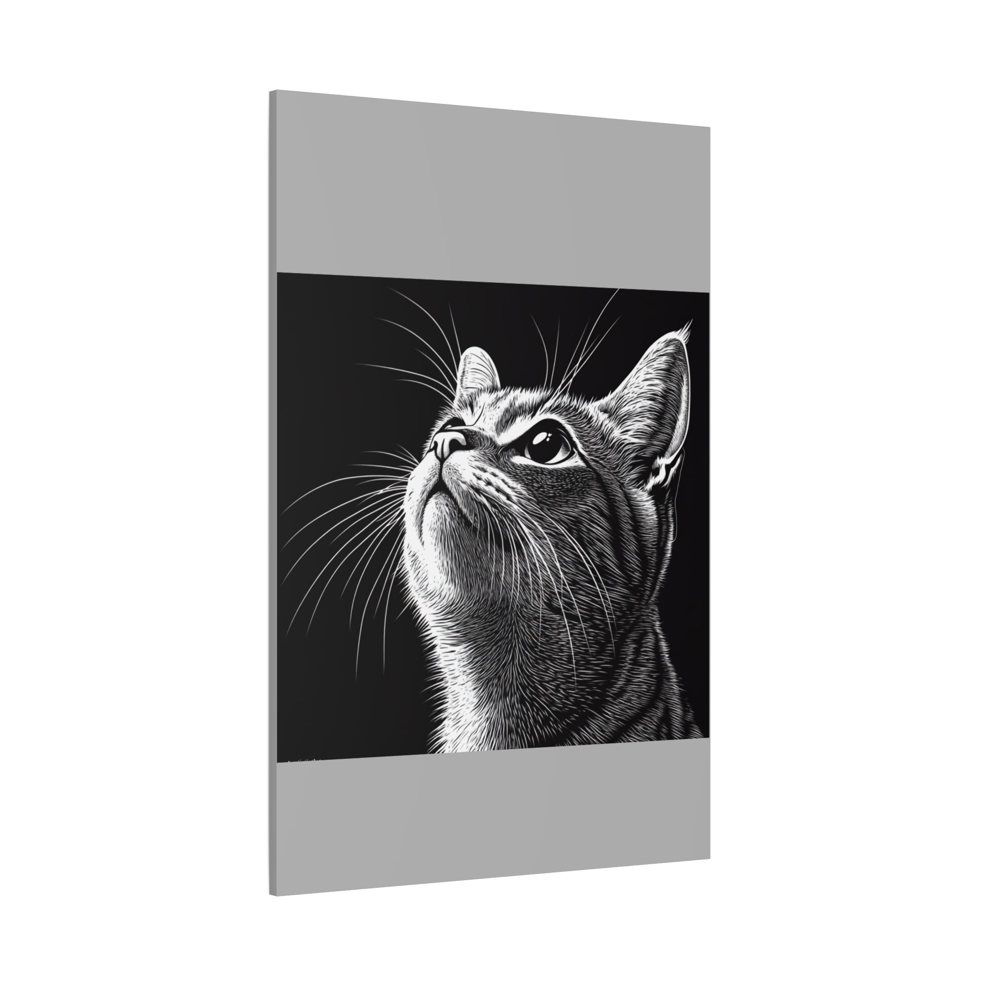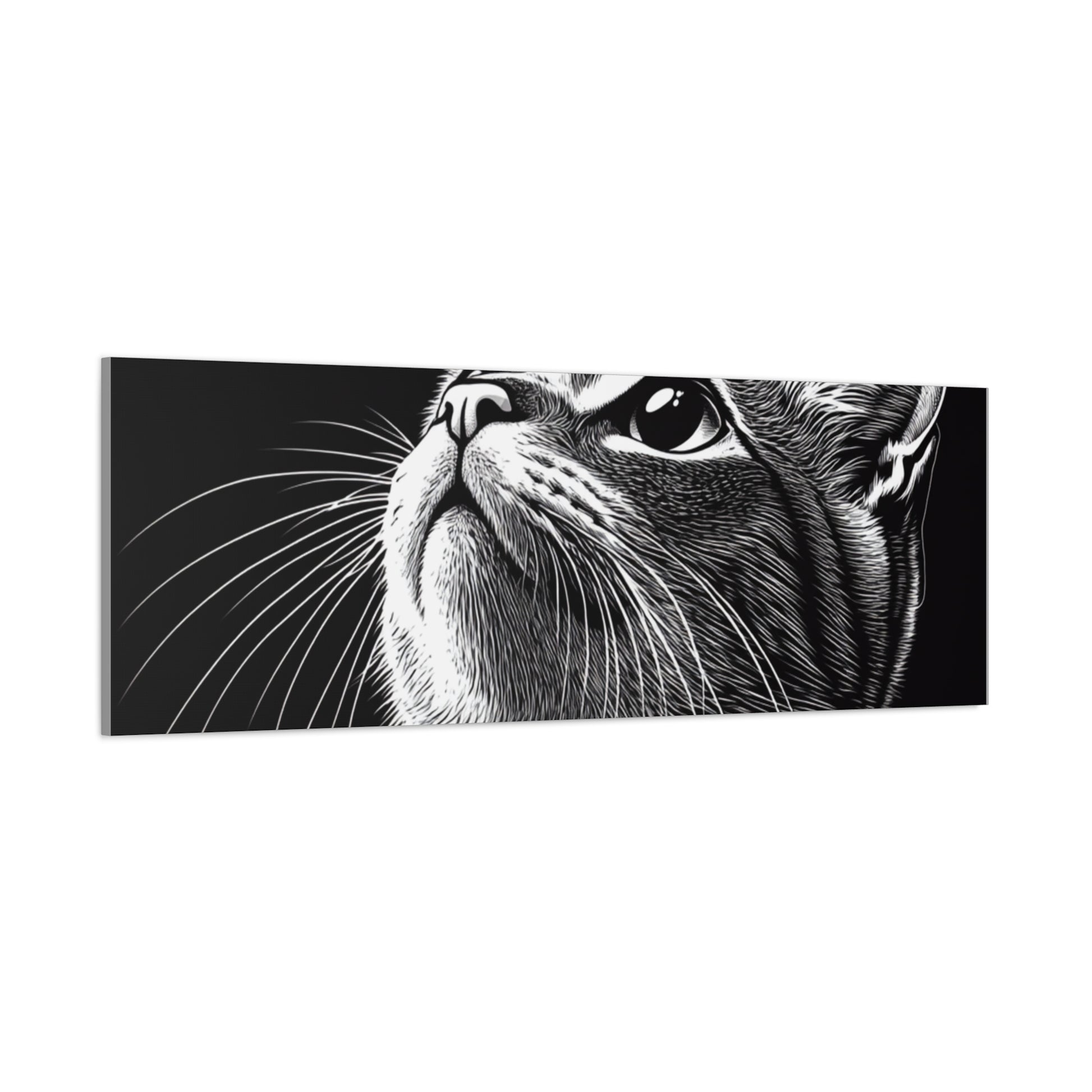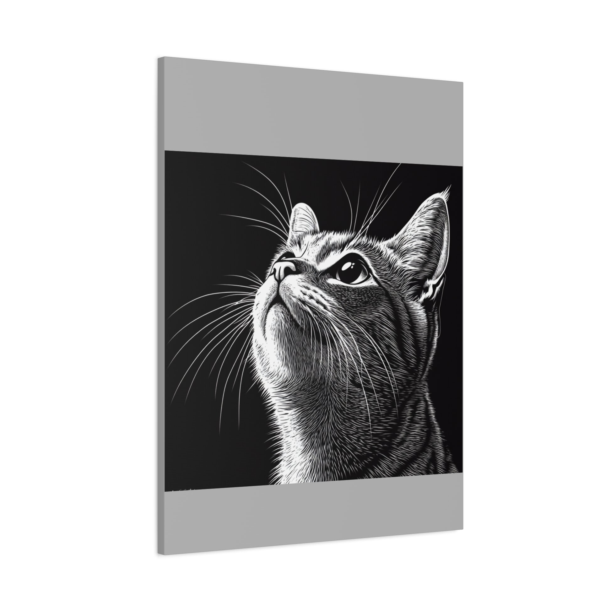 Portrait Cat Canvas Wall Art - Black and White Stretched Print