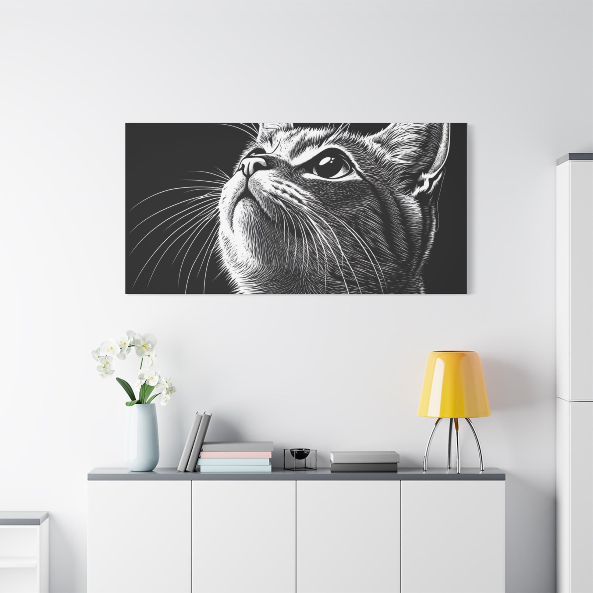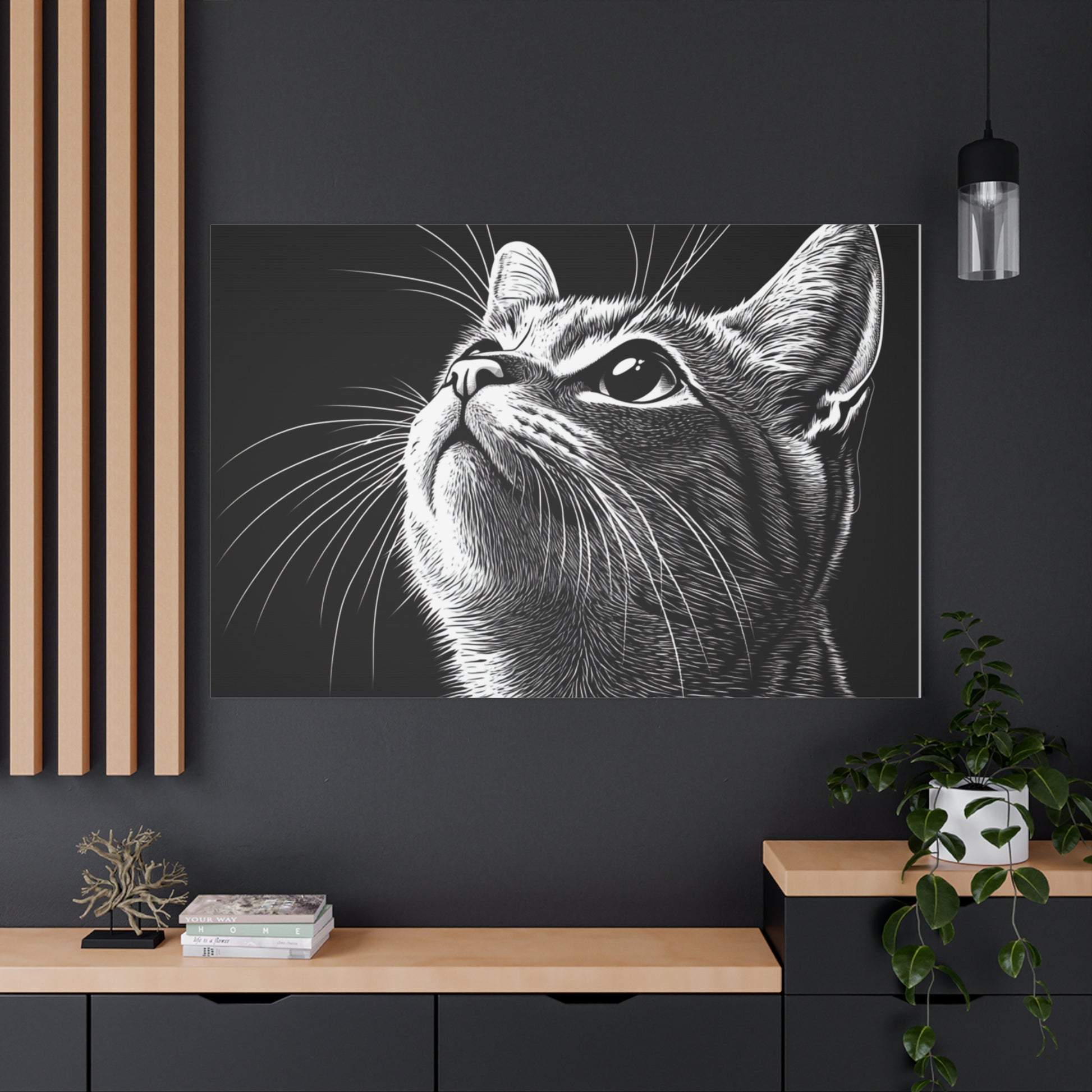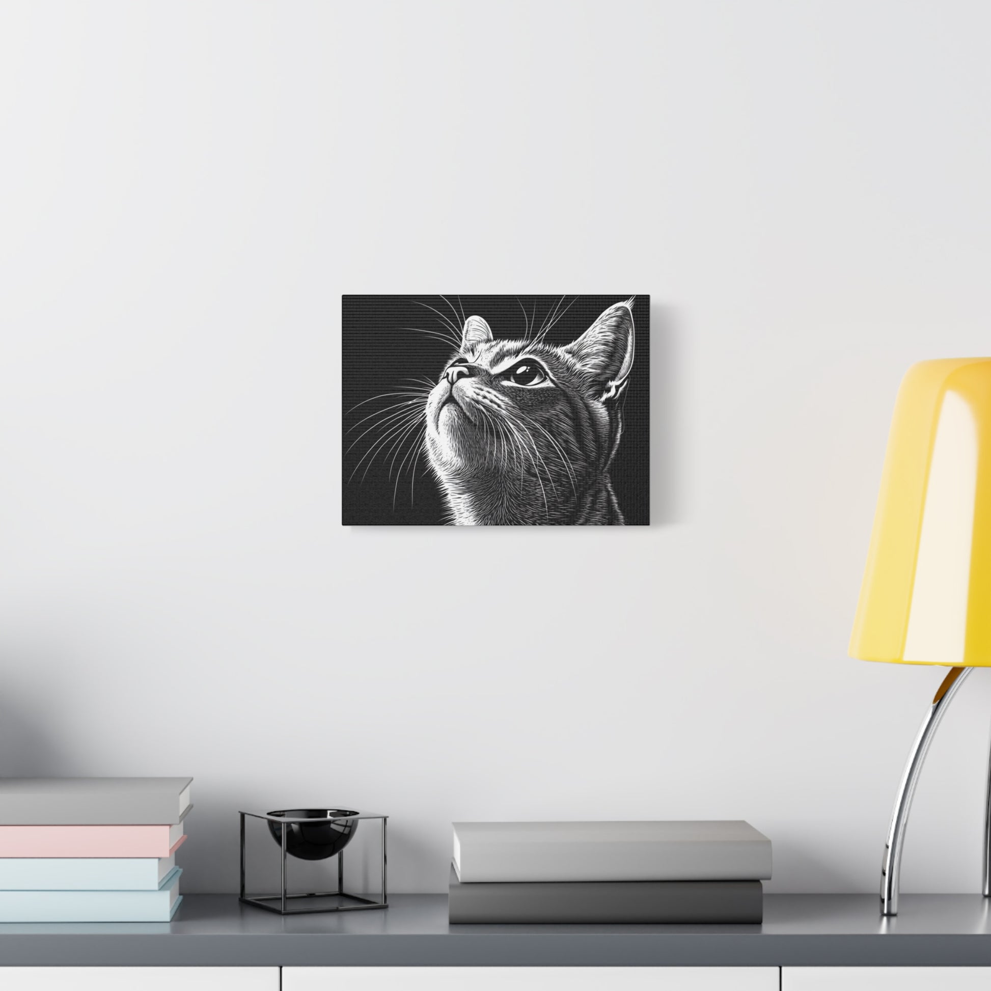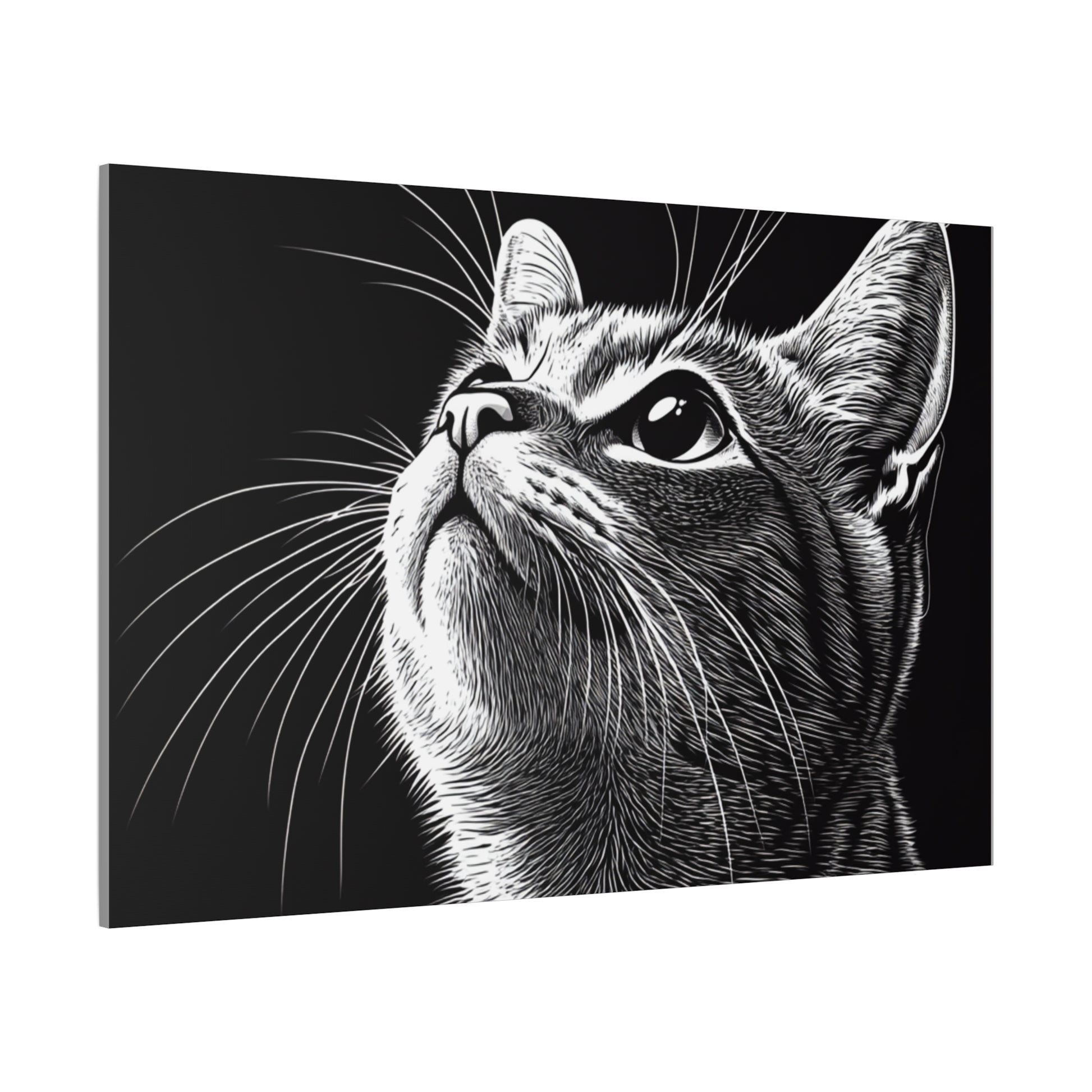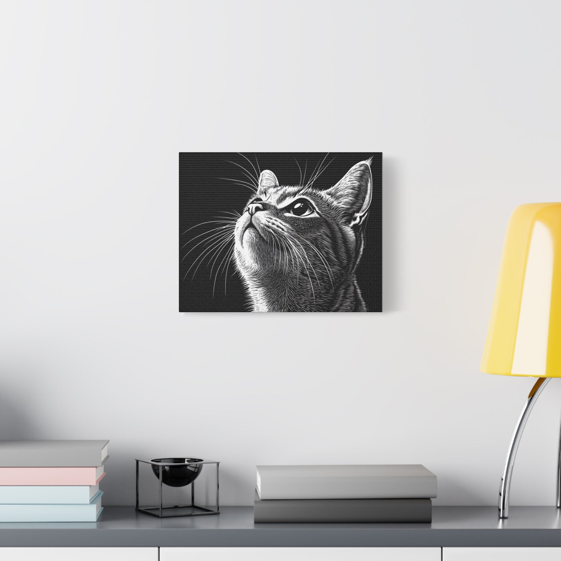 Portrait Cat Canvas Wall Art - Black and White Stretched Print