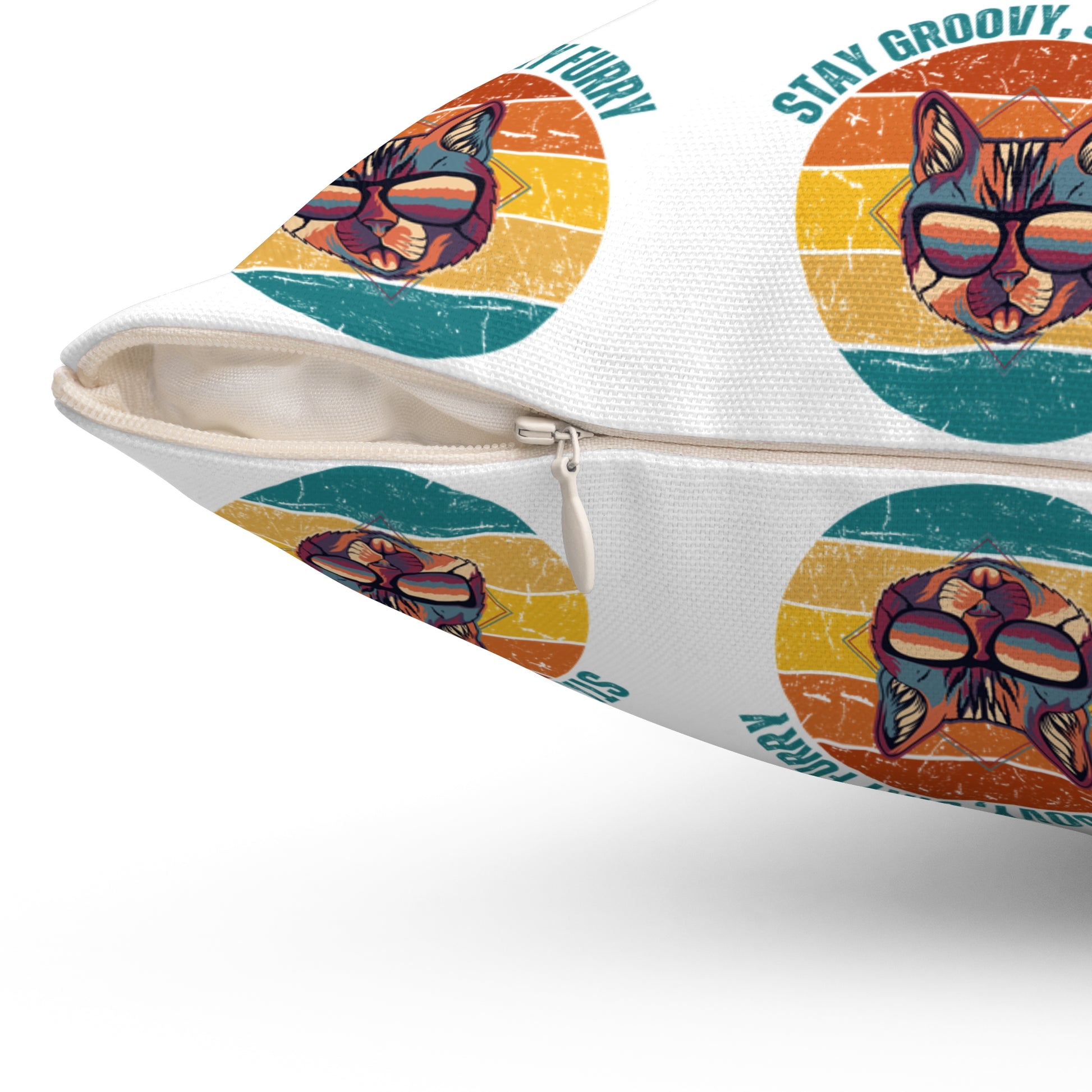 Stay Groovy Cat Pillow - Fun Spun Polyester Square Pillow for Home Decor